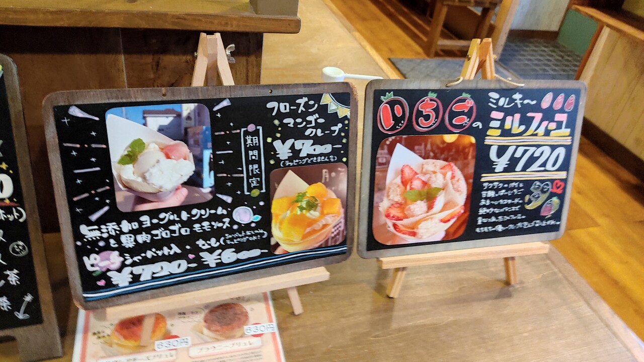 通常のクレープも美味しいのですが 暑い日にはフローズンクレープとかシェイクがとても捗りそうです。