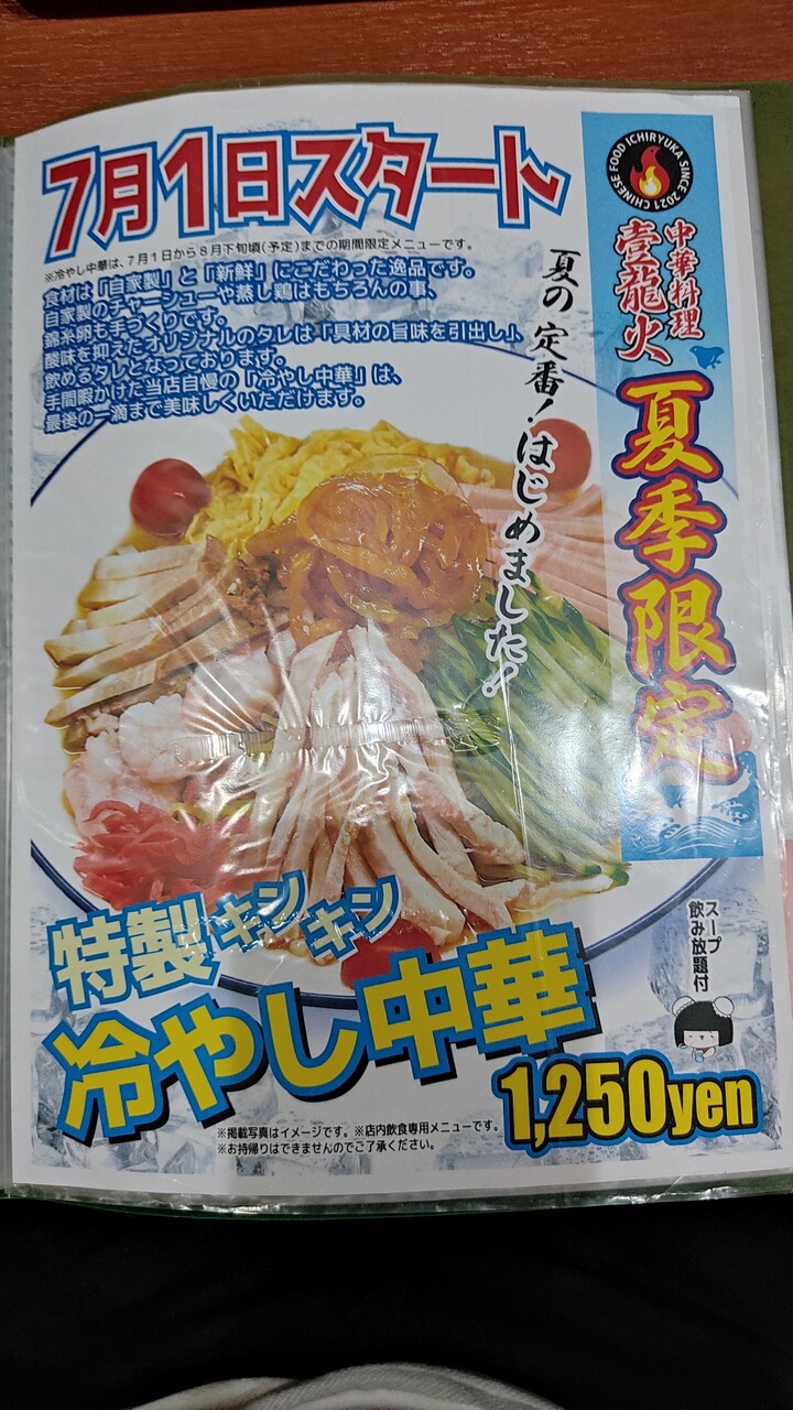 今回のお目当てはこちらです! 夏季限定 特製キンキン冷やし中華(1,250円税込)をオーダーしまして