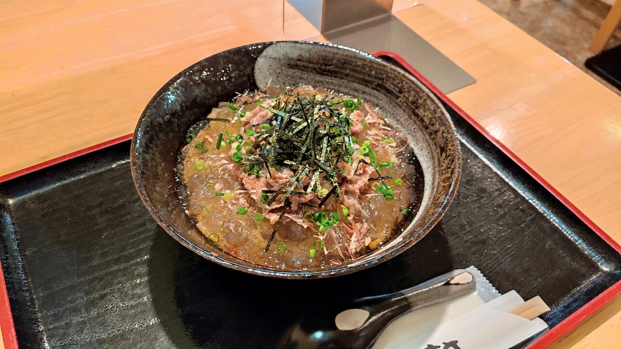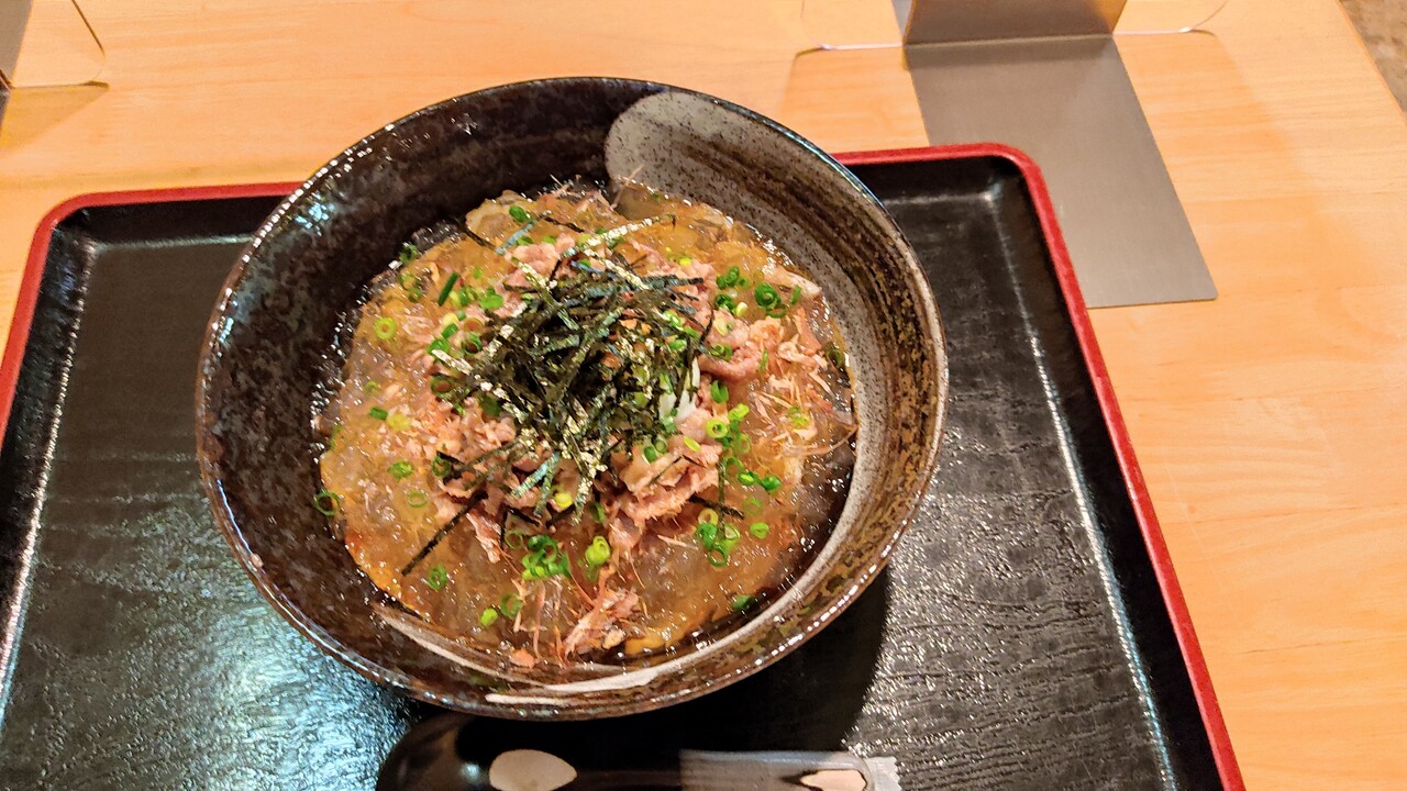 そしてジュレは冷んやりしており 昆布の出汁を秒で感じ取れる 暑い日でも食べやすい ぶっかけうどんでした