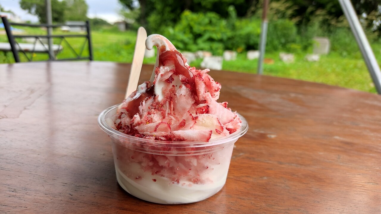 トータルすると冷たくて甘酸っぱくて やっぱり甘くて美味しいソフトクリームです。