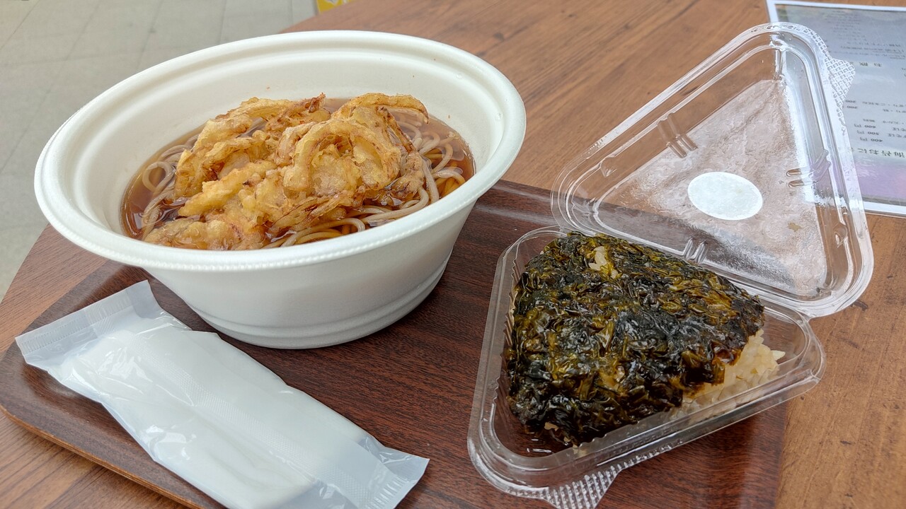 ですか今回注文するものは軽く食べるくらいで良いので 岩海苔おにぎり(200円税込)と かき揚げそば(500円税込)