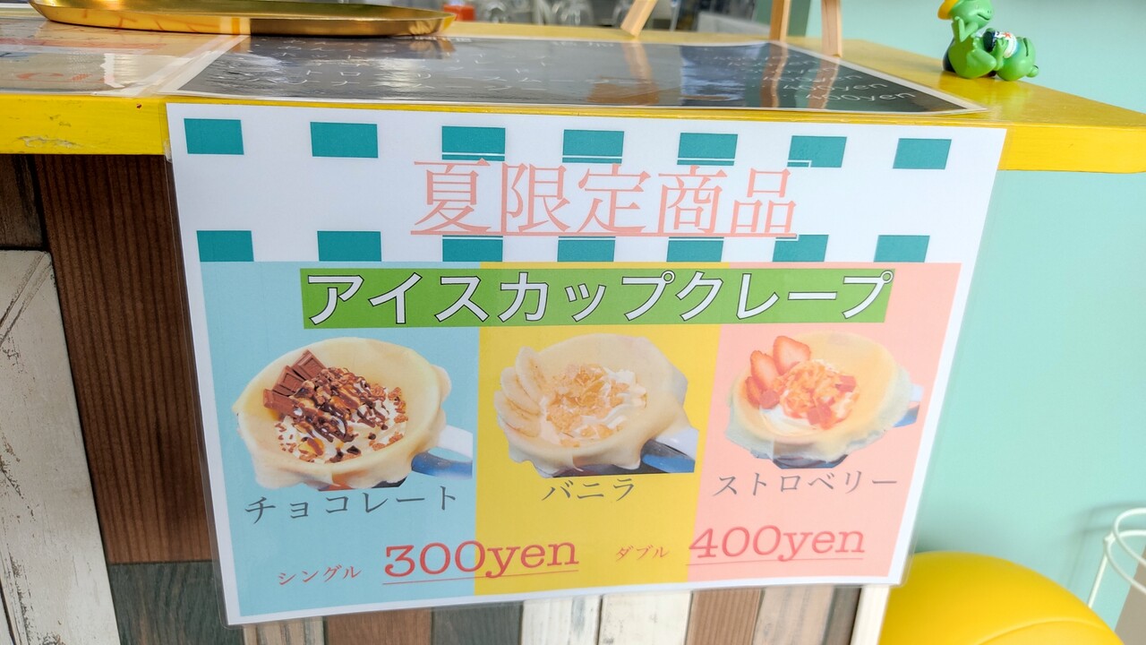 夏季限定のアイスカップクレープ(300円税込)をオーダーしまして