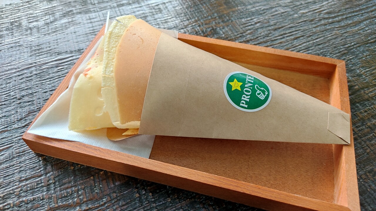 クレープ生地は1枚ものではなくカットされているので食べやすくモチモチして美味しいんです