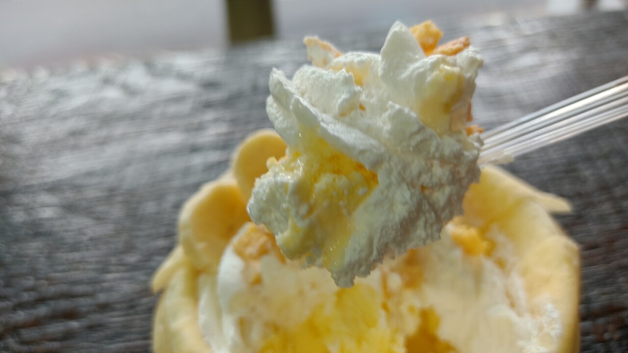 アイスとシリアルと生クリームを同時に口に運ぶと… うん美味い