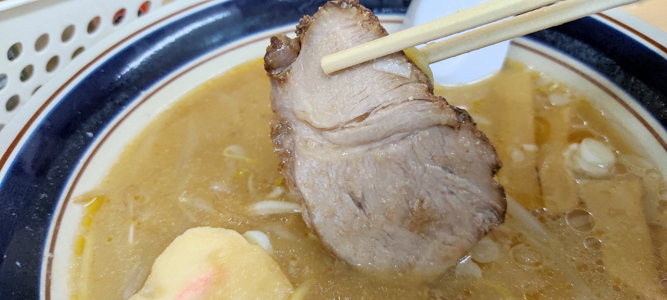 チャーシューはモモ肉の歯応えのあるもので こちらも美味っ