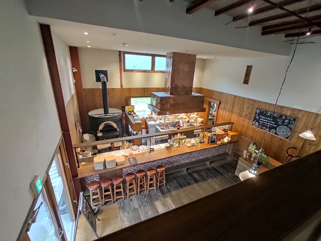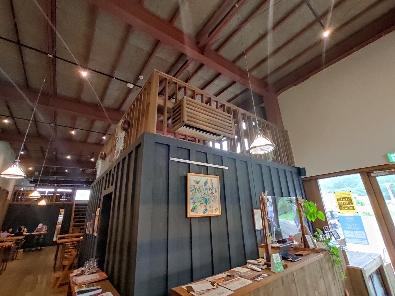 入店しますと天上が吹き抜けで開放感とそして道南スギが使用された店内はお洒落ですね