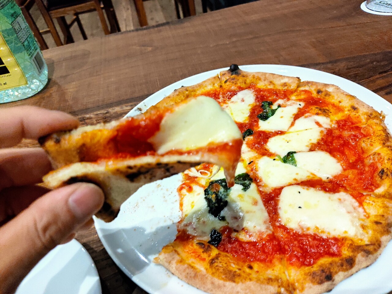 熱々なのでハフハフしながら食べるpizzaは格別です