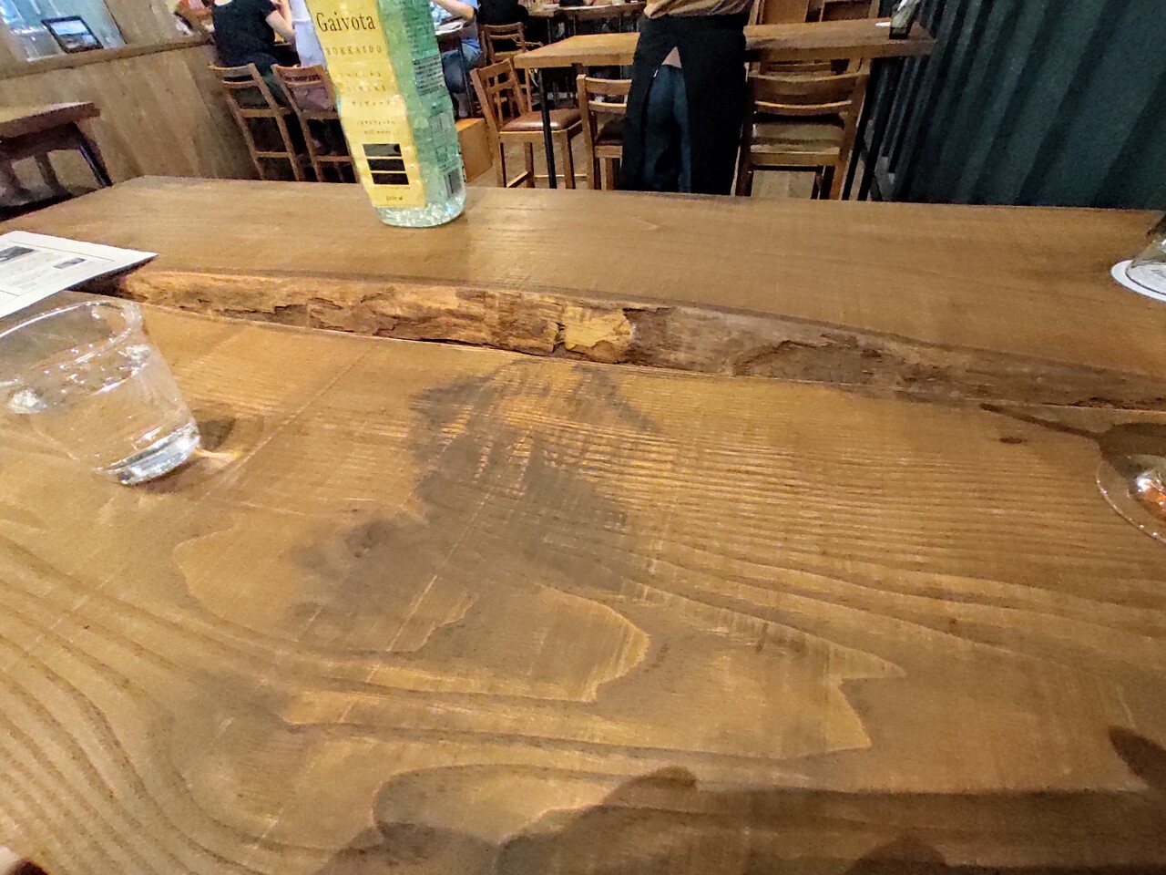 そしてテーブルをよくよく見ると真ん中割れてますやんと… でもこれは木の温もりが感じられて良いんです
