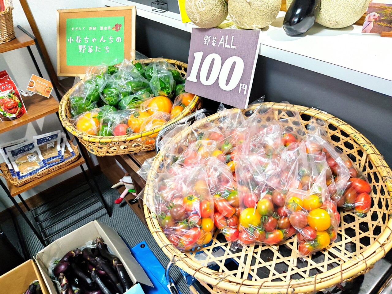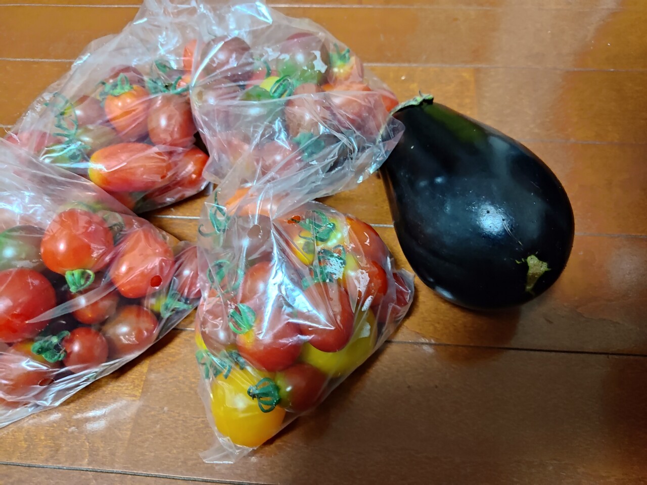 1袋100円のミニトマトを4袋、大きい茄子1つ