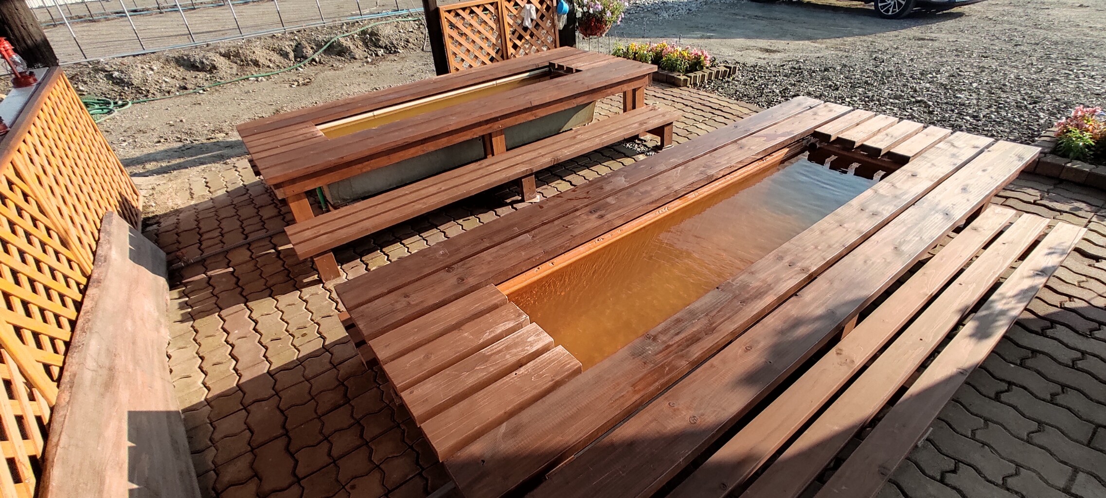 温泉の鮮度が良いのと温泉の入れ替わりが早いので酸化せずに寝湯と釜風呂は透明で 浸かると炭酸の気泡が身体に纏わり気持ち良さもあるんです。