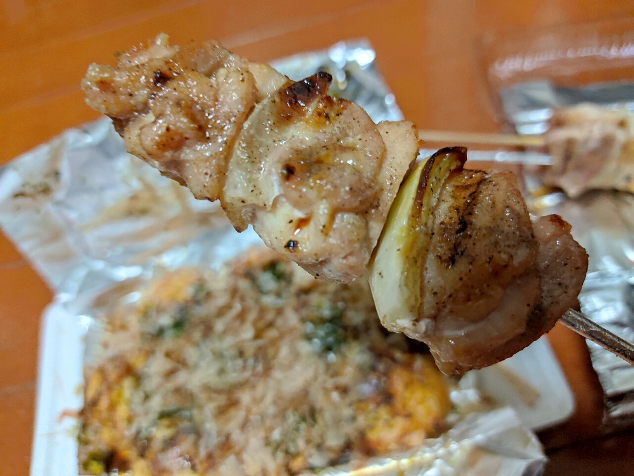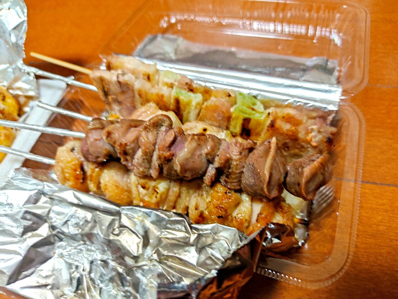 まだ温かい焼き 串は焦げ防止のアルミホイルが巻かれております