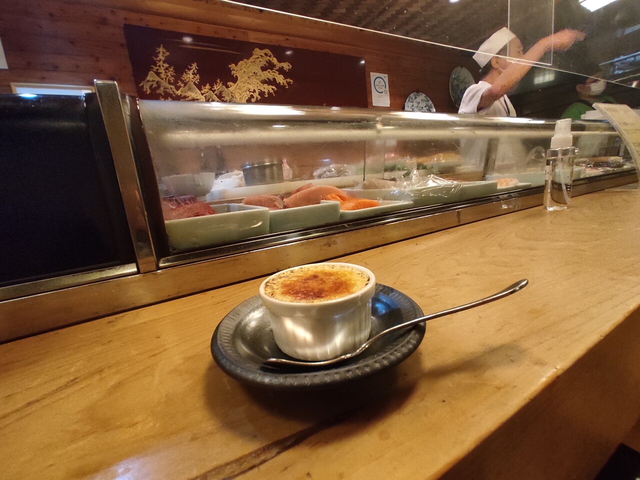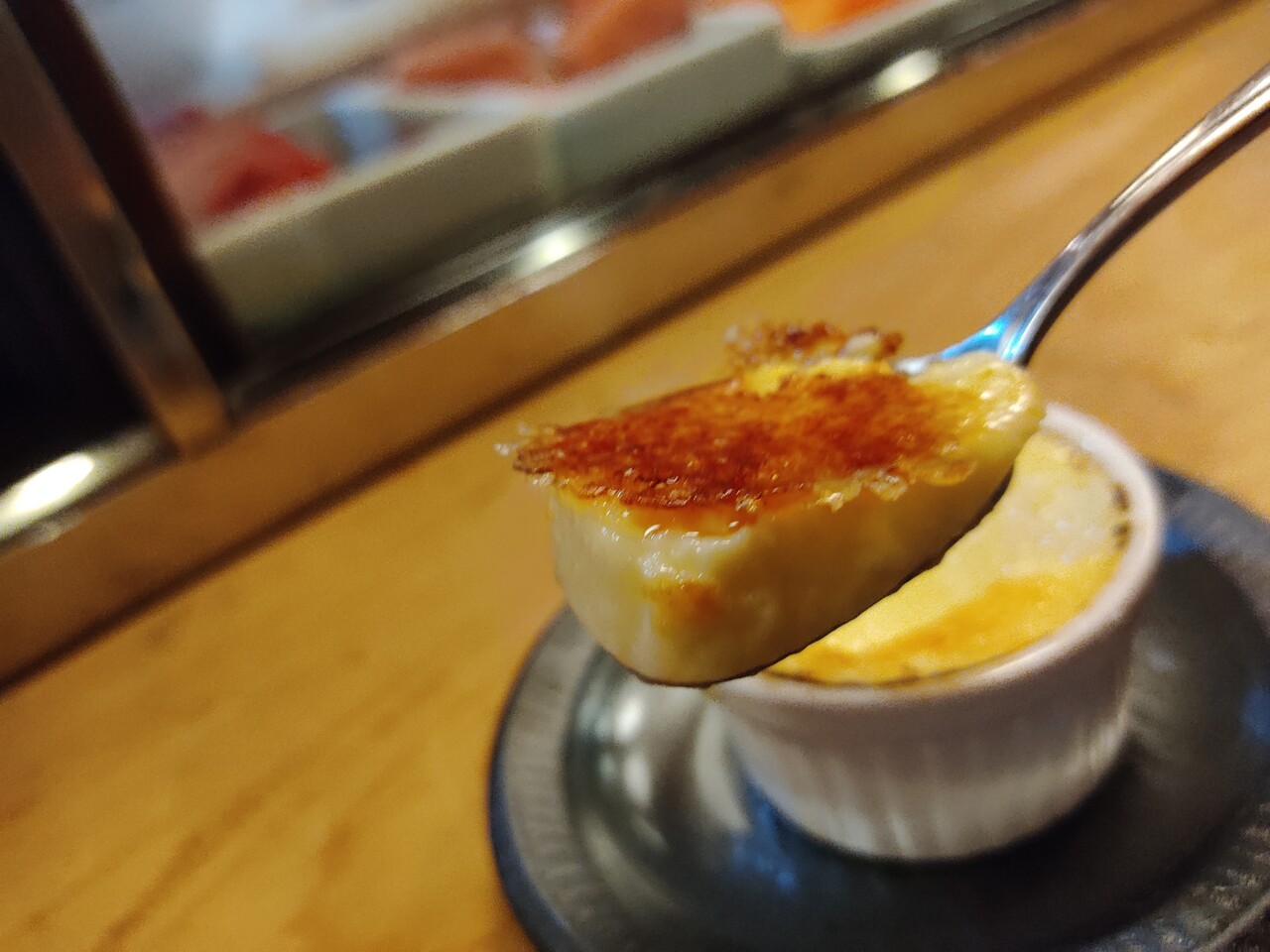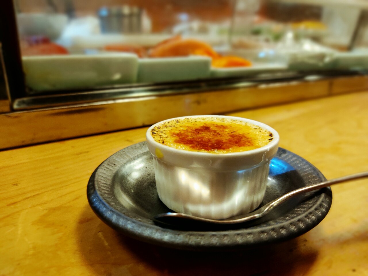表面はパリパリ感で香ばしく 中のカスタードプリンは美味しい 〆のデザートでした