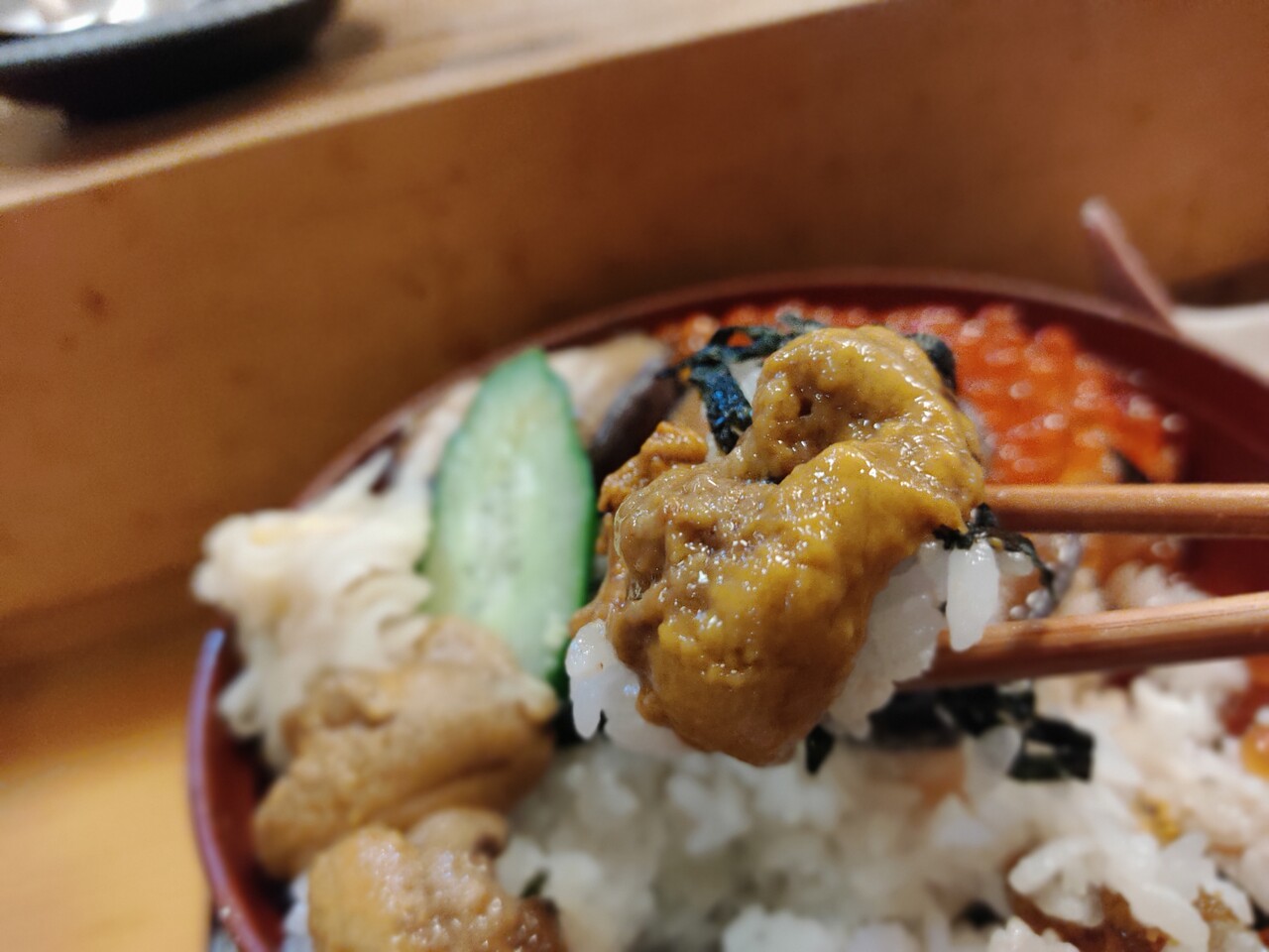 ウニは稚内のもので 嫌な香りが無く 甘くてとろけるような舌触りで美味い!