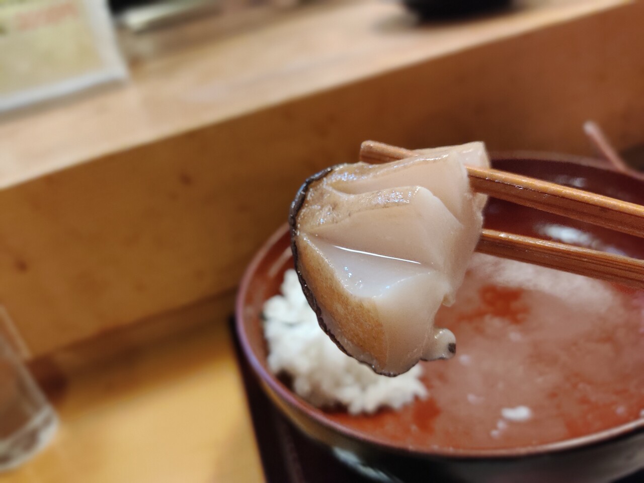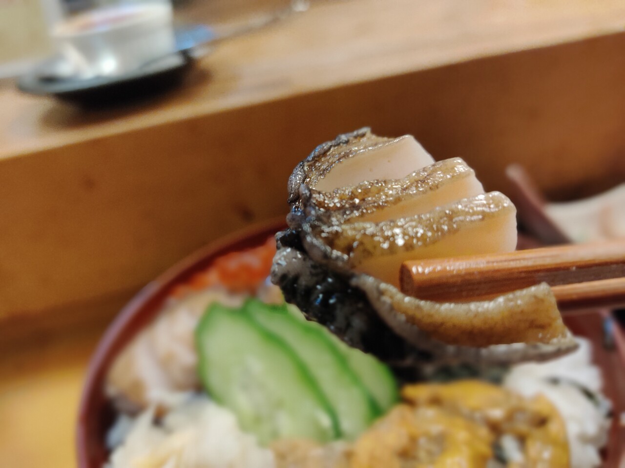 そして鮑ですが3個入っており半割されているので丼の上に6個並んでおります