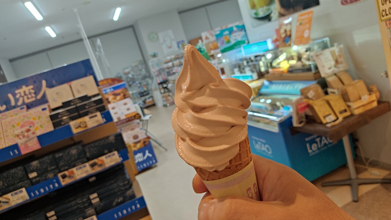 ワッフルコーンにソフトクリームは仄かにブラウンカラー