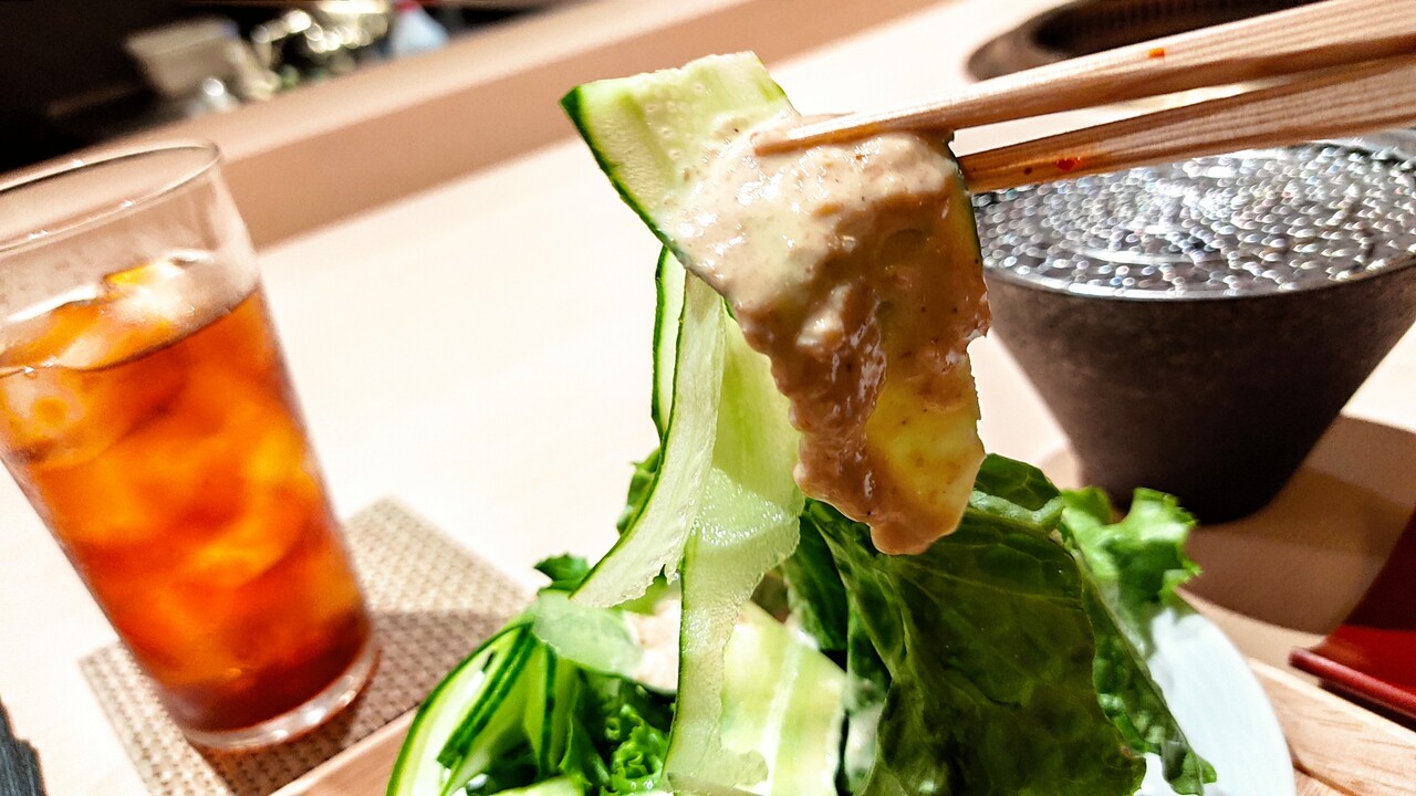 キムチとサラダを食べていると 牛タンが運ばれてきました