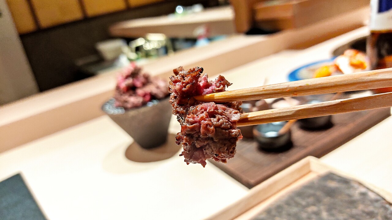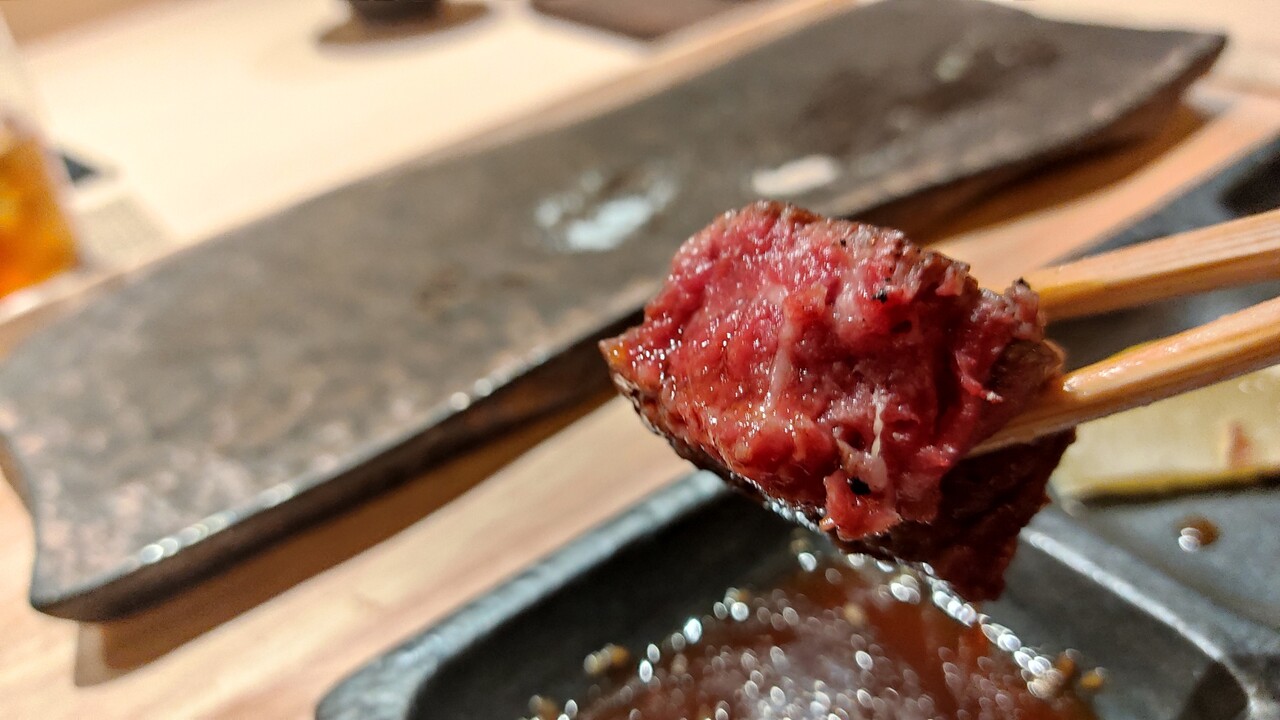 店員さんは 焼きながらフォークみたいなもので一口サイズ程に引き裂いており 理由を尋ねると ナイフでカットするより 肉の繊維質がほどけ美味しく食べられるとの事で