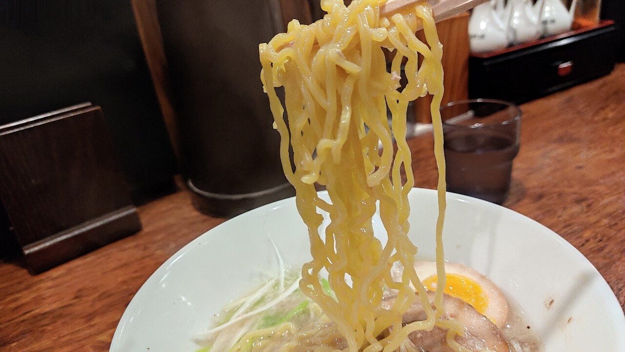 麺は中太麺でずずっと啜ると スープが絡んで美味しいんです