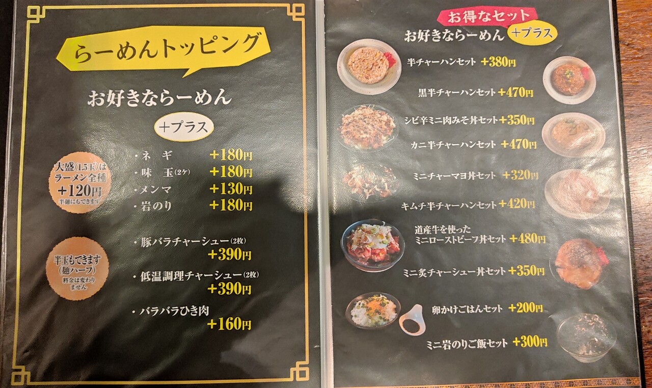メンマ、味玉、長ネギ、まん丸いチャーシュー、モヤシ、ひき肉の内容となっております