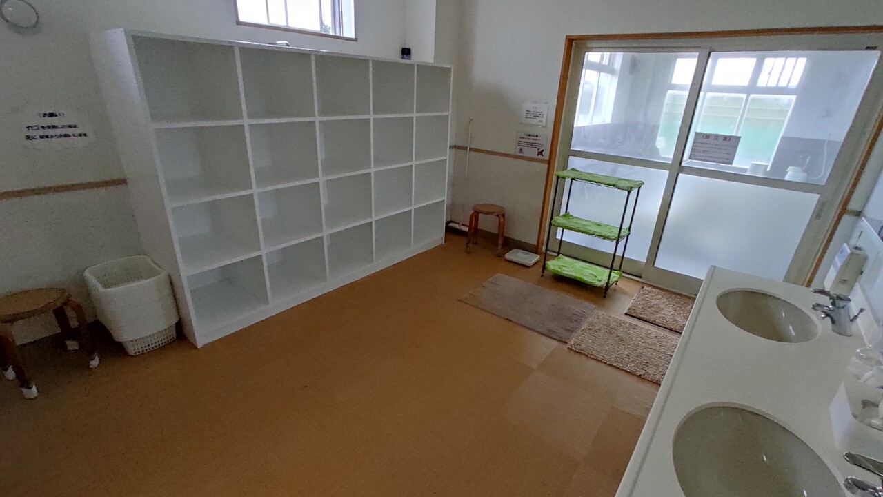 早速 男湯へ 脱衣所は白と茶を基調としており清掃が行き届いており清潔感が御座います