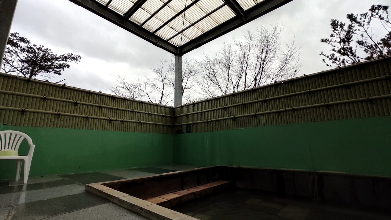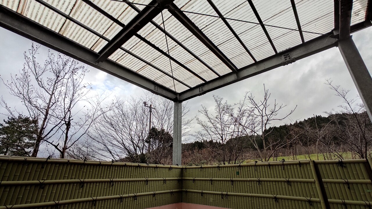 上を見上げると天井はありますが 横から外が眺められ 夜になると夜空の星々を観ながらの温泉も乙であります