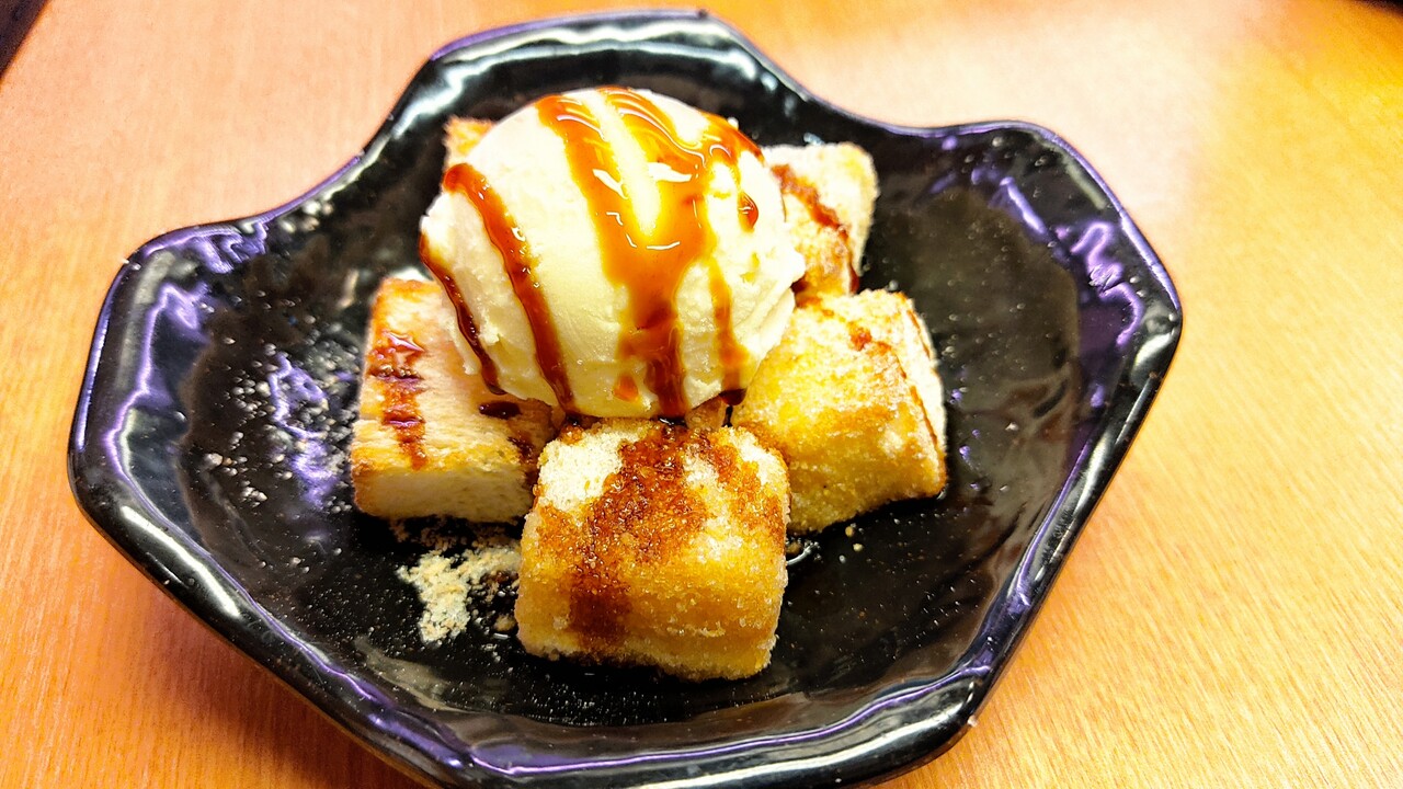 揚げパンきなこにアイスを乗せて