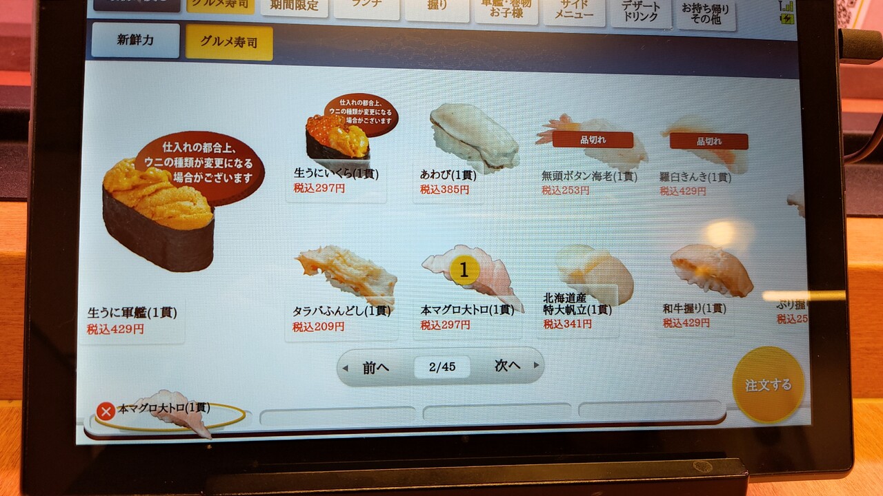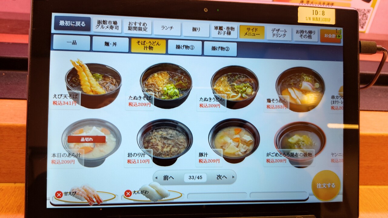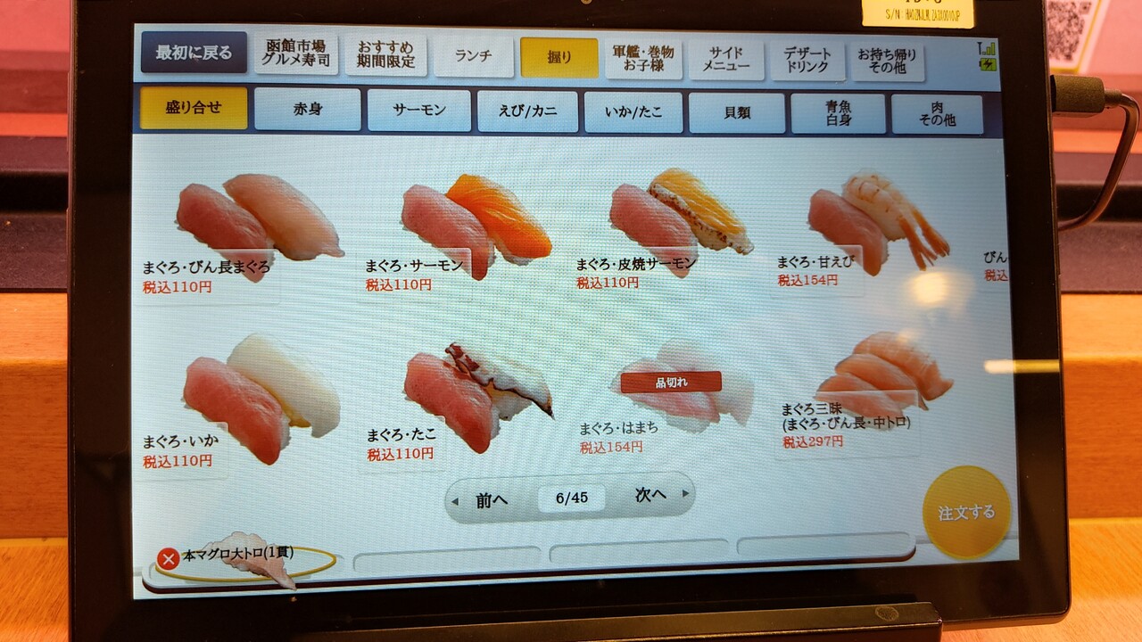 食べたいものを適当にタブレットでオーダーして 届くのを待ちたいと思います