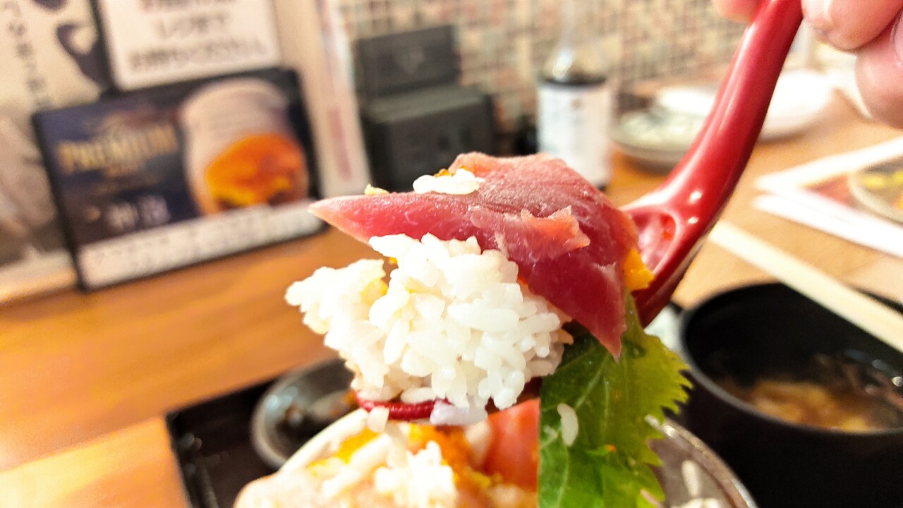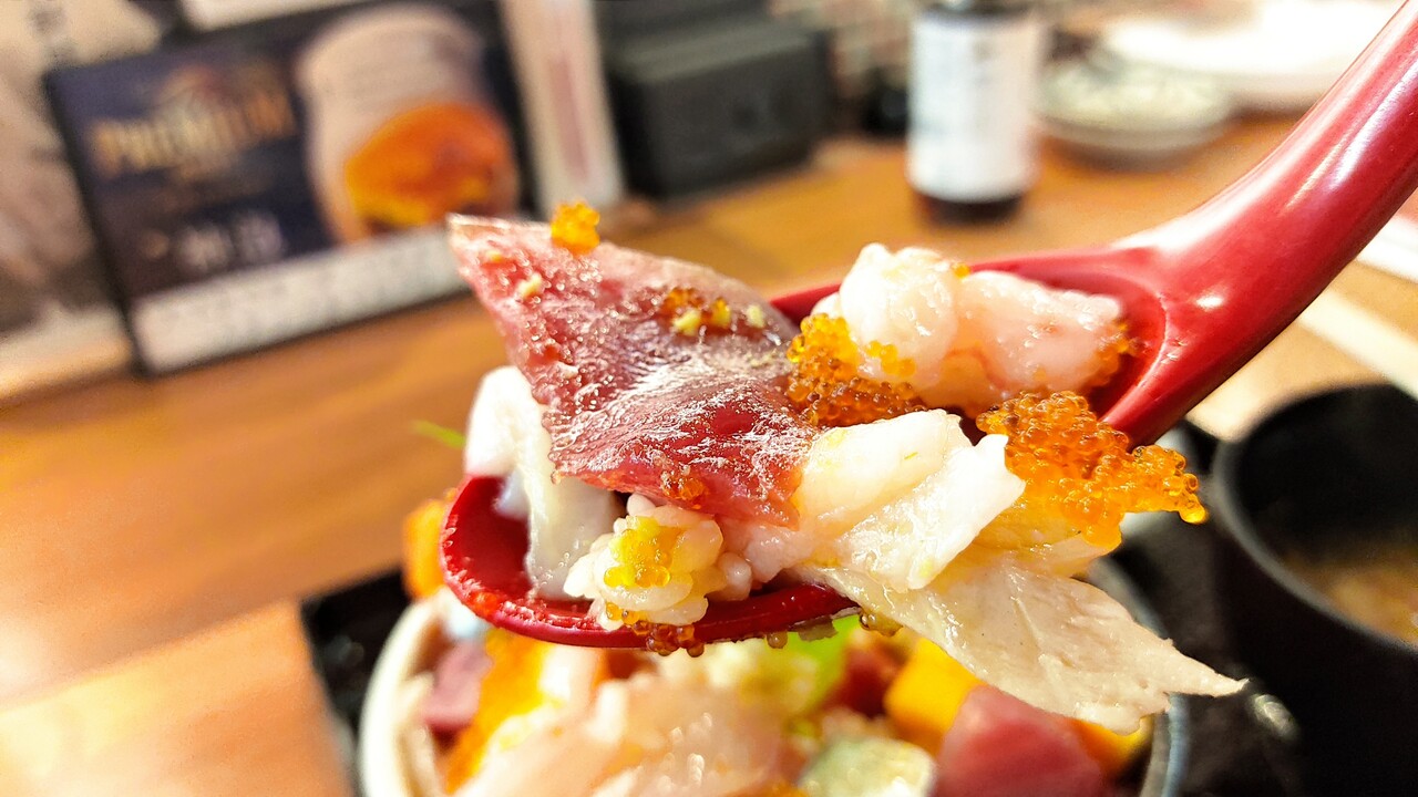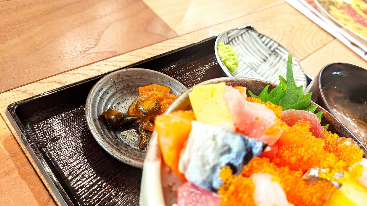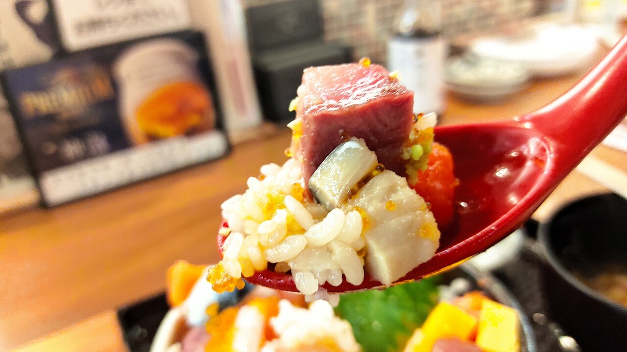 多分9種類の具材が入っており 丼はそんなに大きくはないのですが 海鮮が溢れんばかりに盛られていたので 食べ応えはあったのかなぁと思います