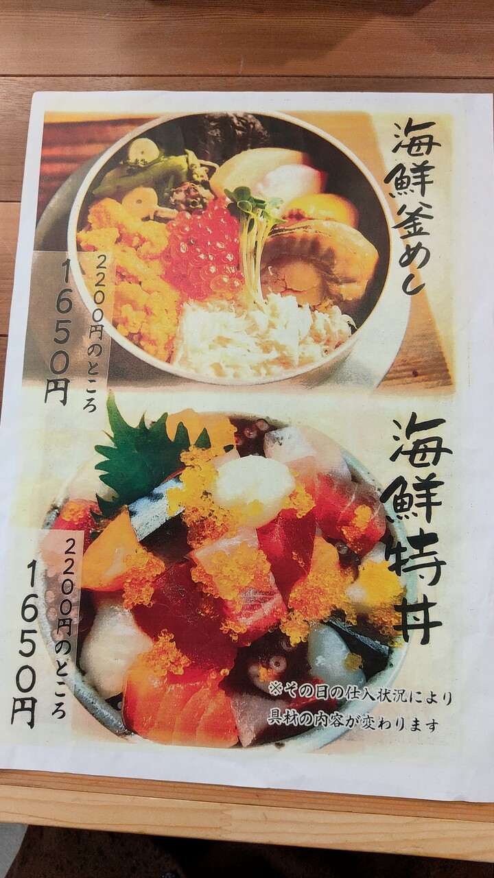 メニューですがランチメニューの 海鮮特丼 (¥1,650)こちらわオーダーしたいと思います