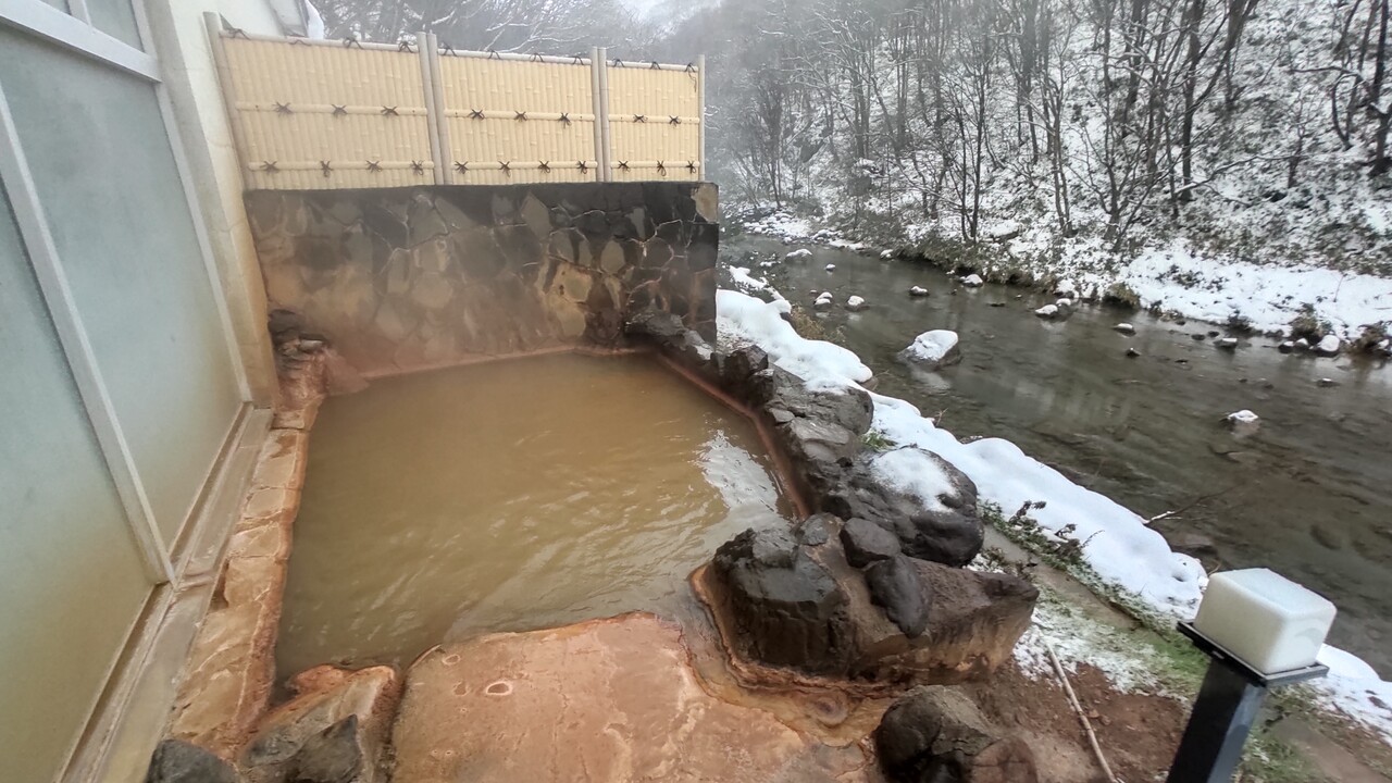 そした熱々の温泉に浸かりながら 露天から見える白銀の見市川を望み 身体が温まったら氷点下と外気を浴び クールダウンして また温泉に入り温まる喜び