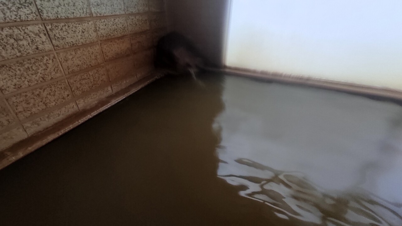 浴槽の淵を指でなぞると指が茶色くなり これが温泉成分なんです!濃い!
