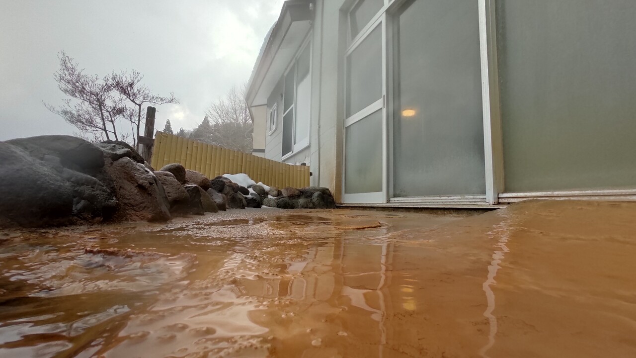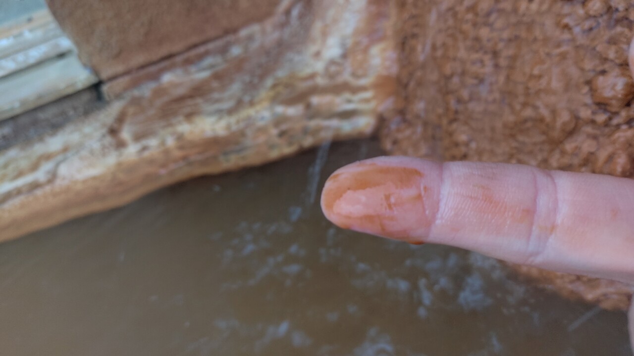 鉄分を含んだ温泉が 時間が経過するにつれ酸化して赤茶色に濁っていくんです