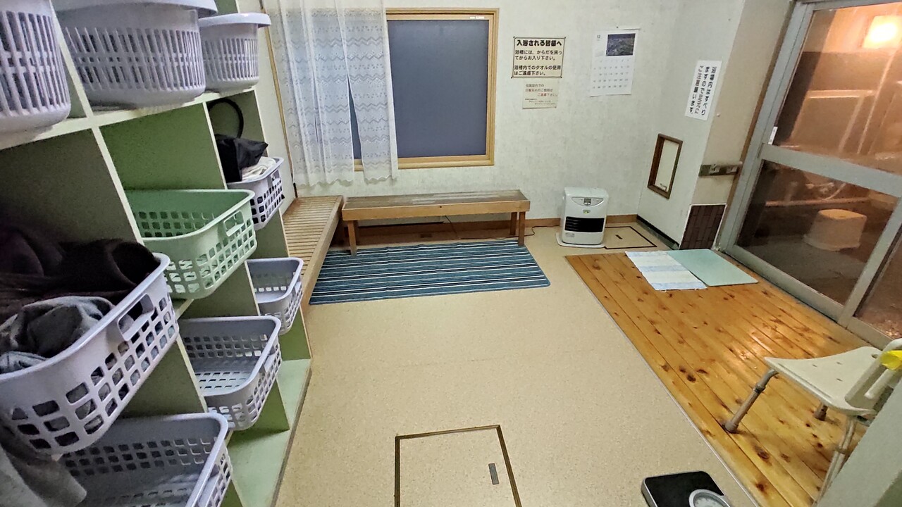 ロッカー等は無くカゴに衣類を入れる仕様です