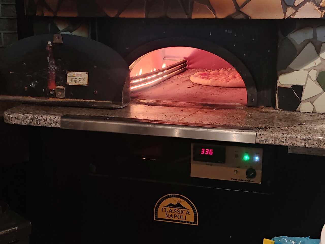 そして どのくらいの時間が経ったでしょうか ピッツァも焼き上がったようで 窯の中から取り出され