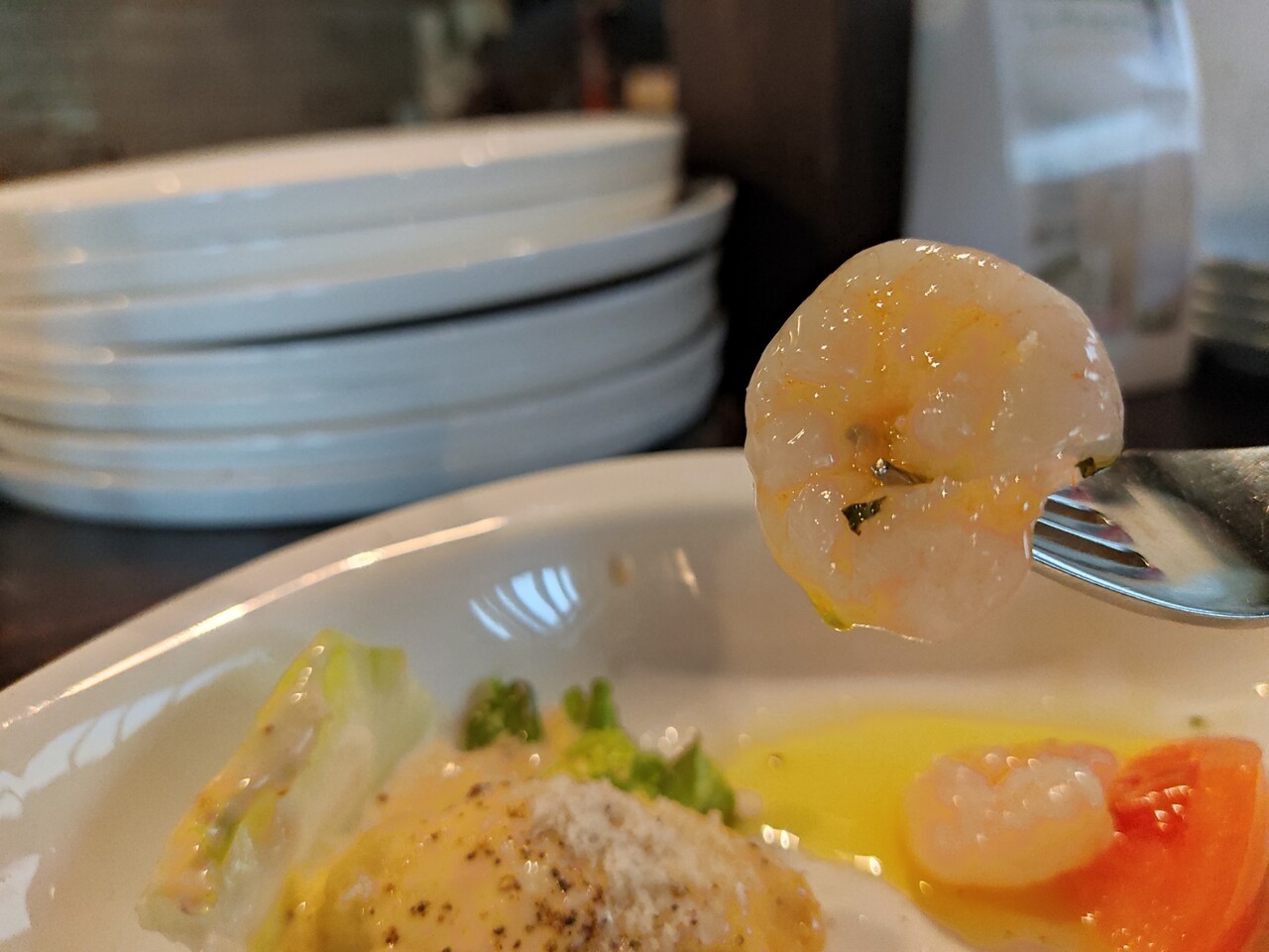 エビはプリプリ 鶏肉も美味しく頂いていると…