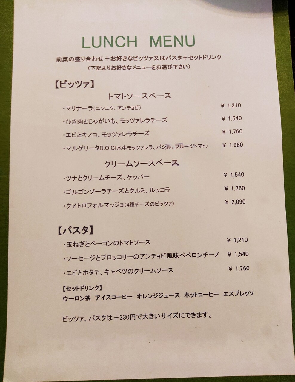 ランチのメニュー表です