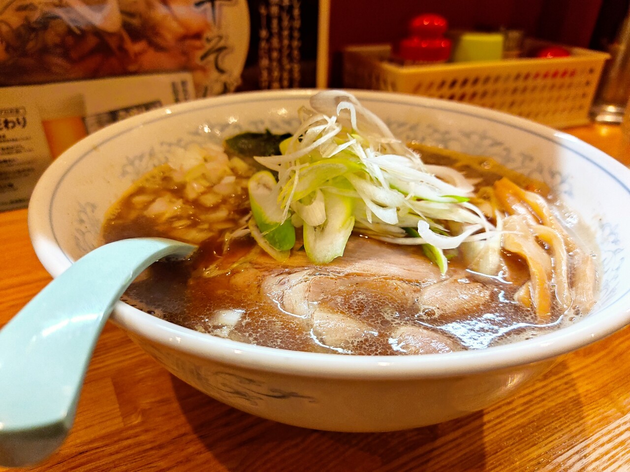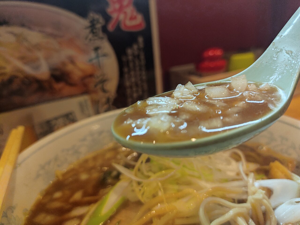 麺を啜ってスープも飲んで 玉ねぎのシャクシャク食感を堪能しながら 更に更に食べ進めて程なくして完食となりました