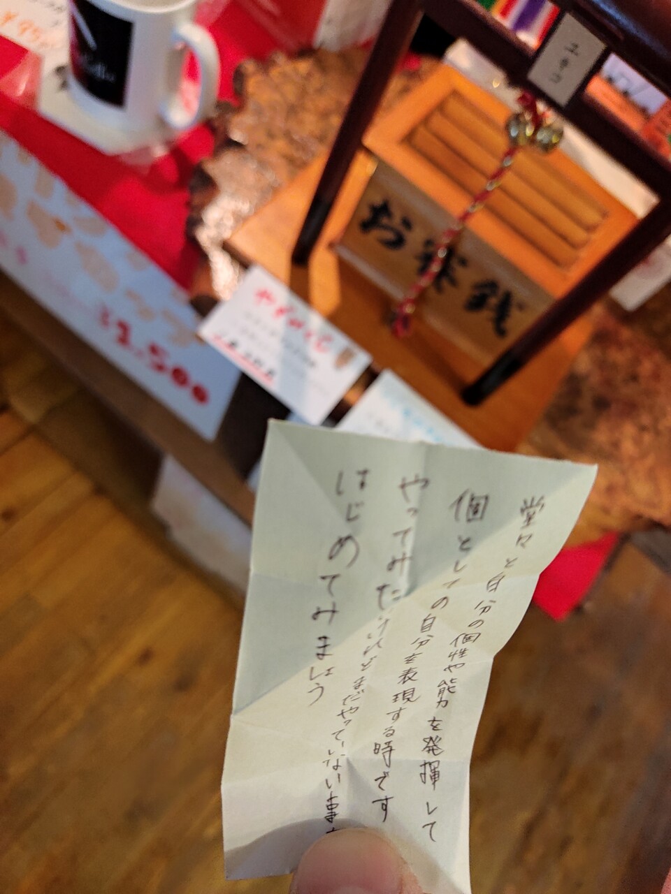ならばと お賽銭を箱に入れ 参拝し 籤を引きます…