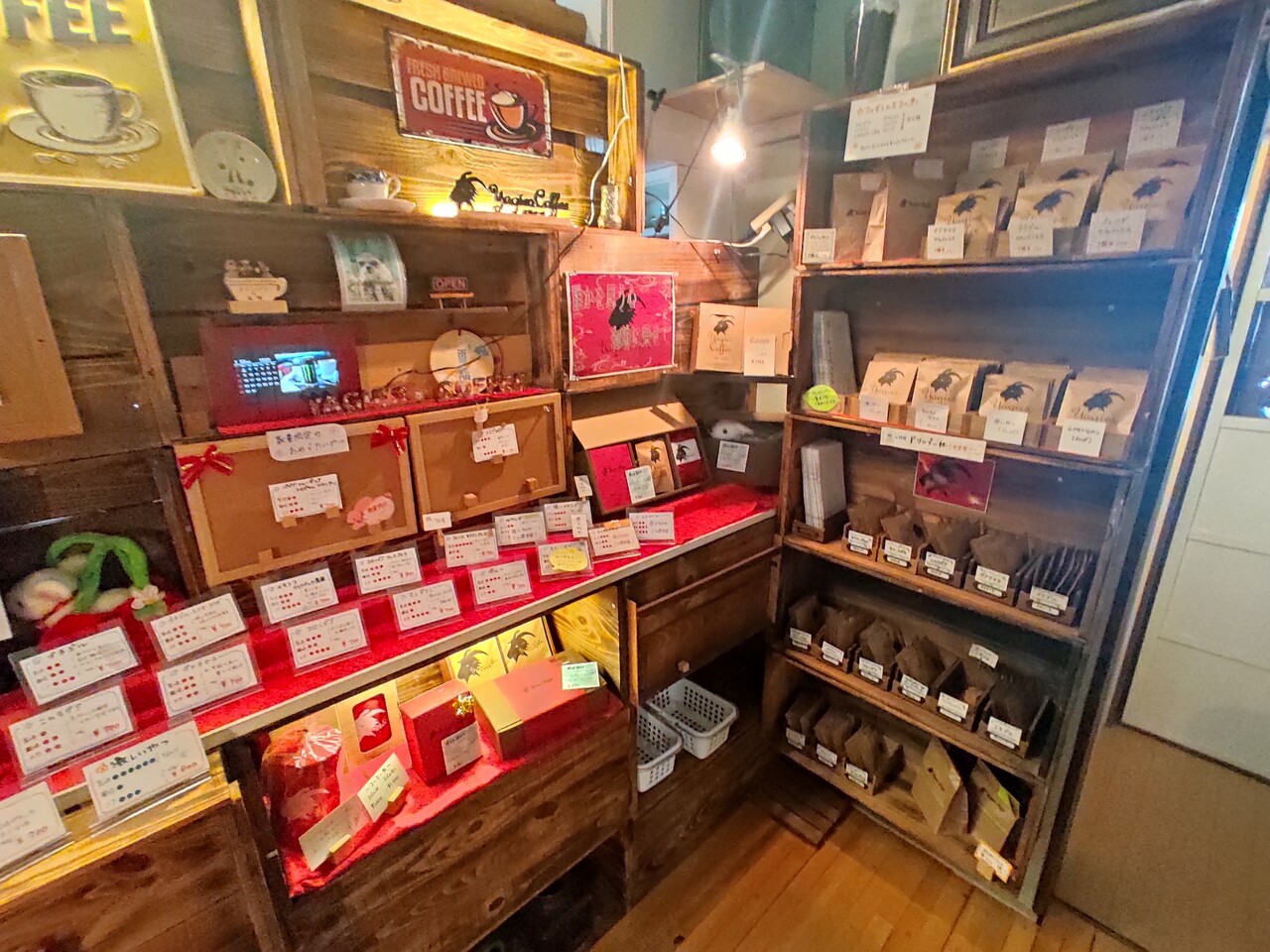 両サイドに珈琲豆が