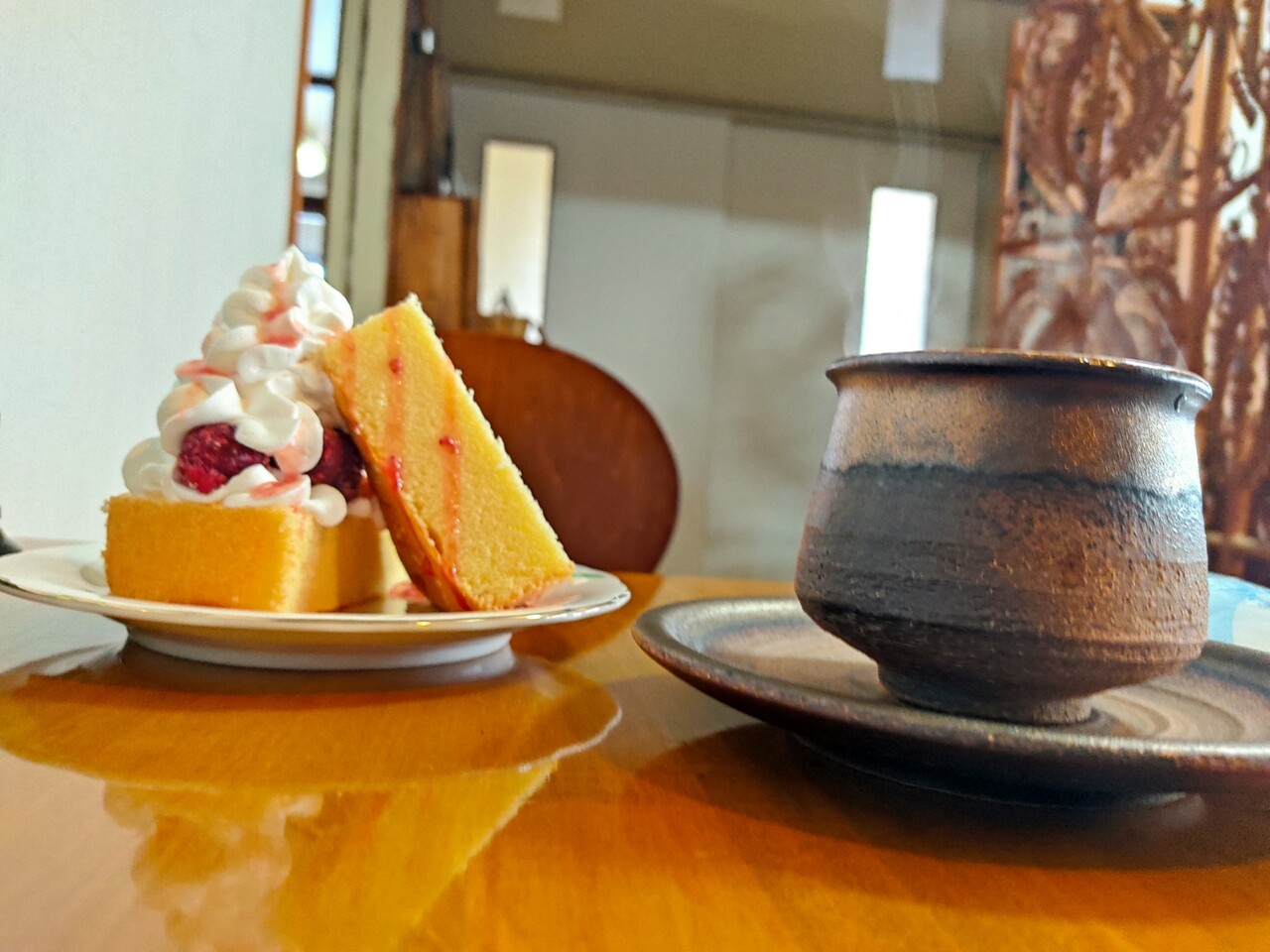珈琲からは 湯気と共に良い香りがゆらゆらと上がります