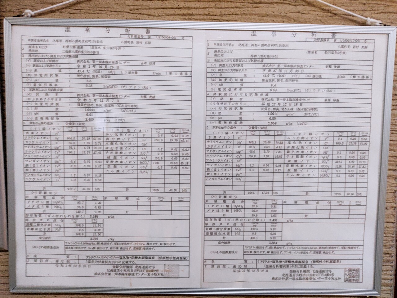 温泉分析書