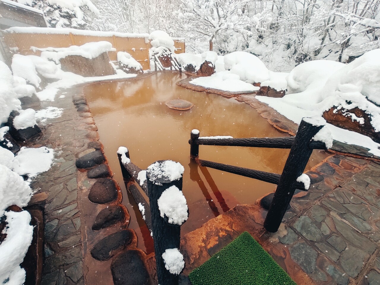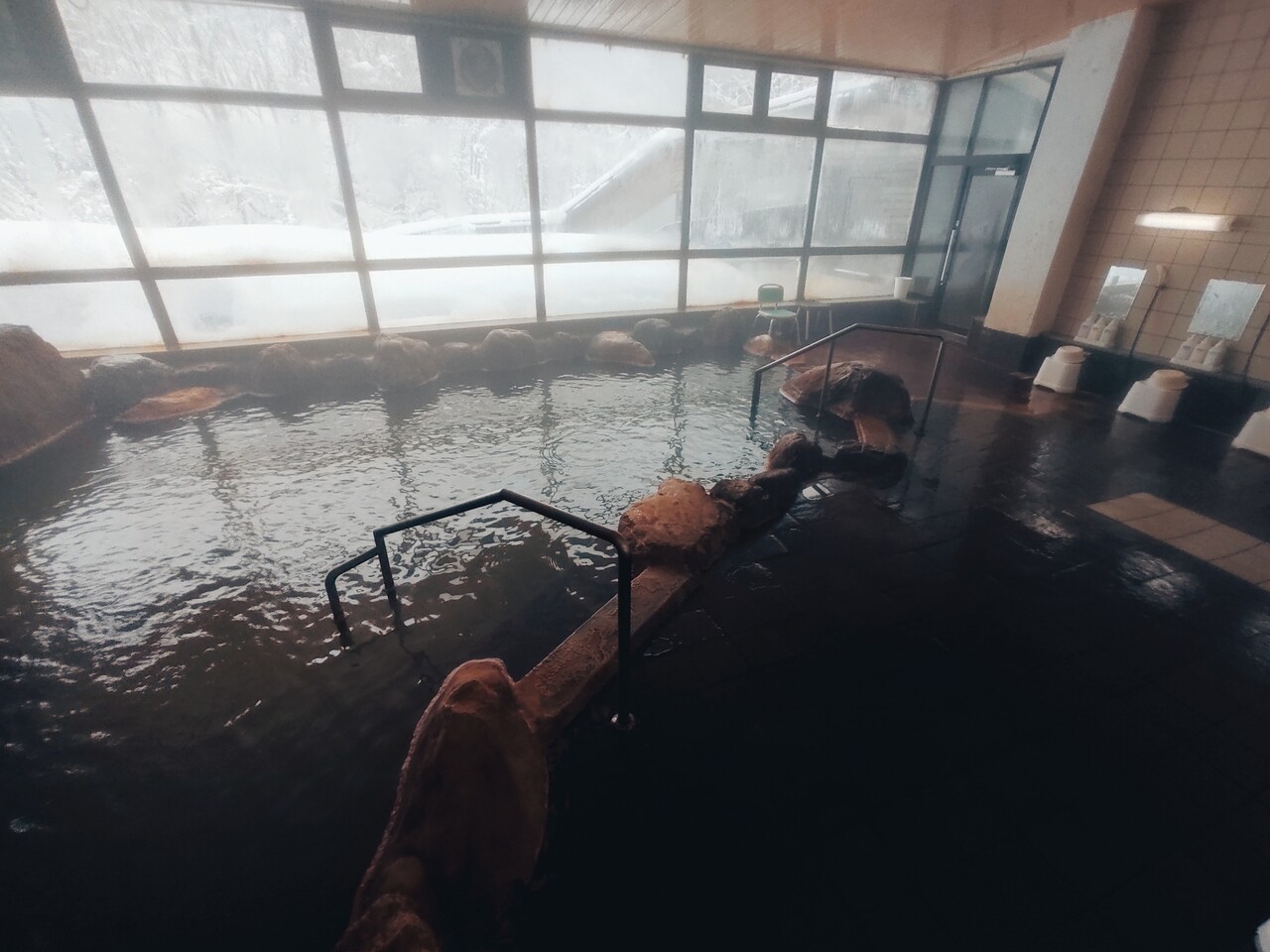 温泉に浸かると黄緑色した温泉で鉄錆臭がして 口に含んでみると 塩気はあるのですが 旨みを感じるかのような炭酸泉特有の味わいがあります。