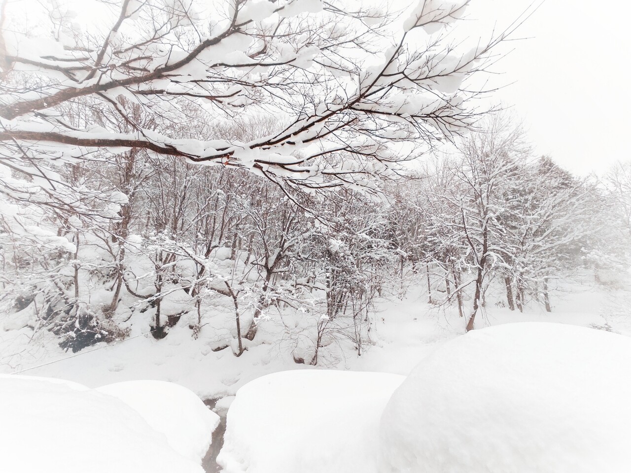 雪が積もっており先は見えませんが 川があるんです