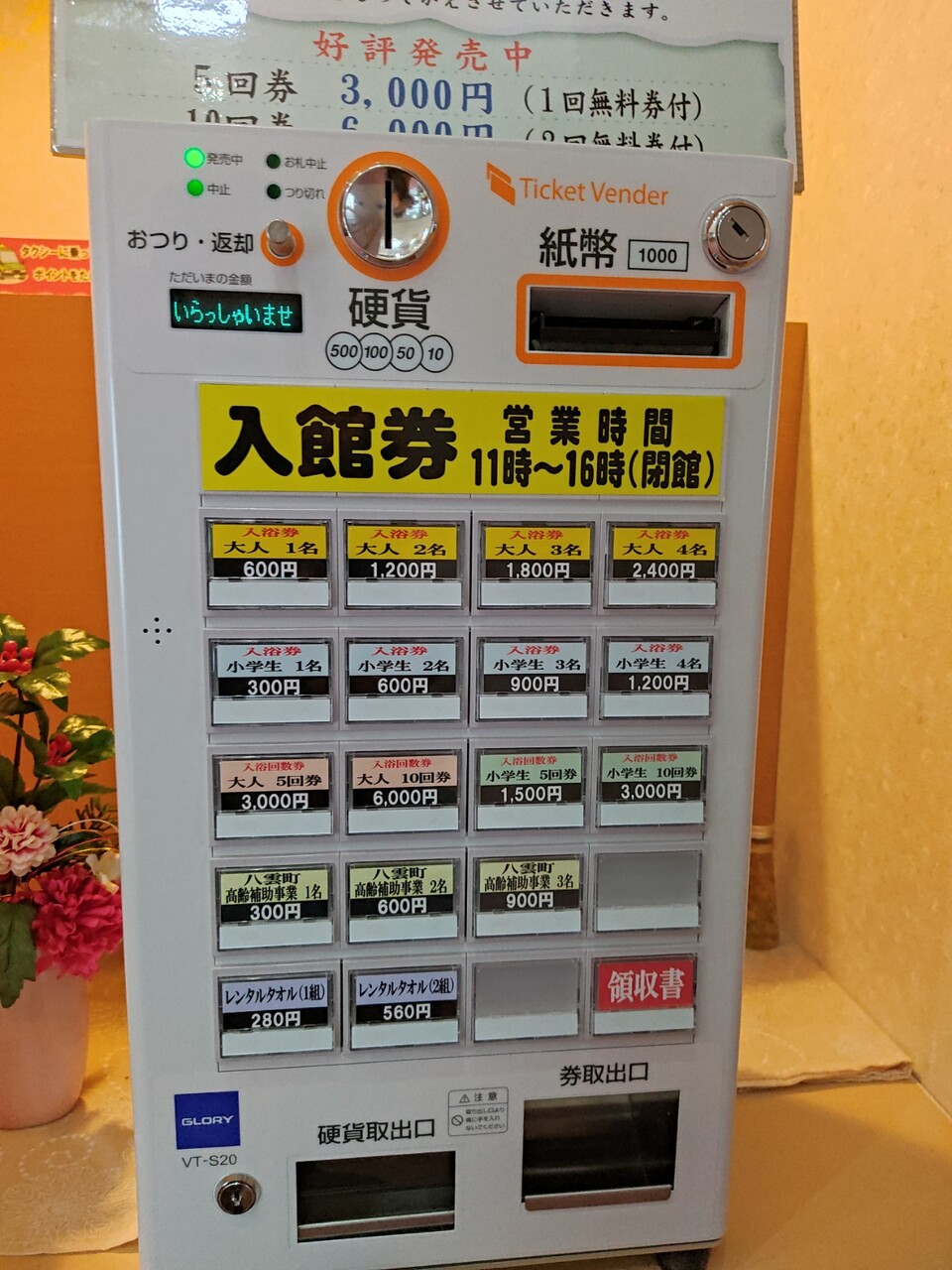 券売機で大人¥600のチケットを購入し温泉へ向かいましょう