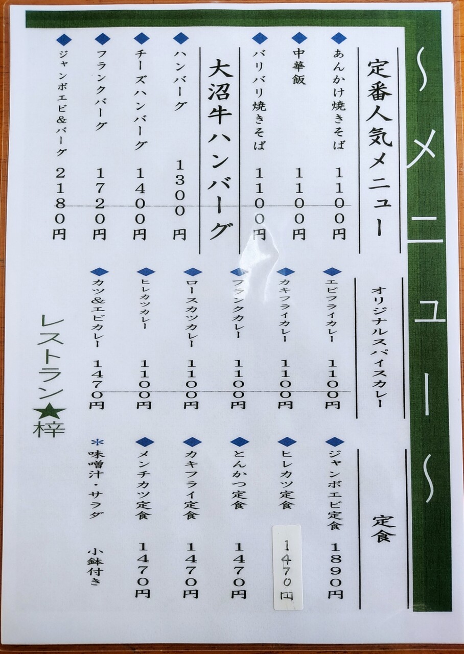 定番のあんかけ焼きそばをオーダーすると見栄えが良さそうでしたが 今回は大沼牛ハンバーグ(¥1,300)こちらをオーダーしたいと思います