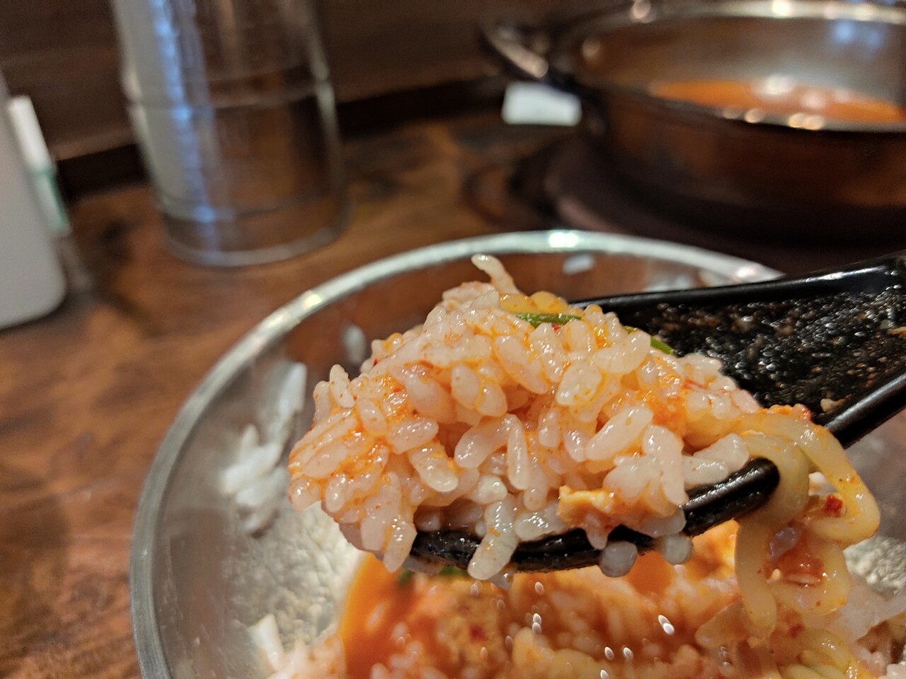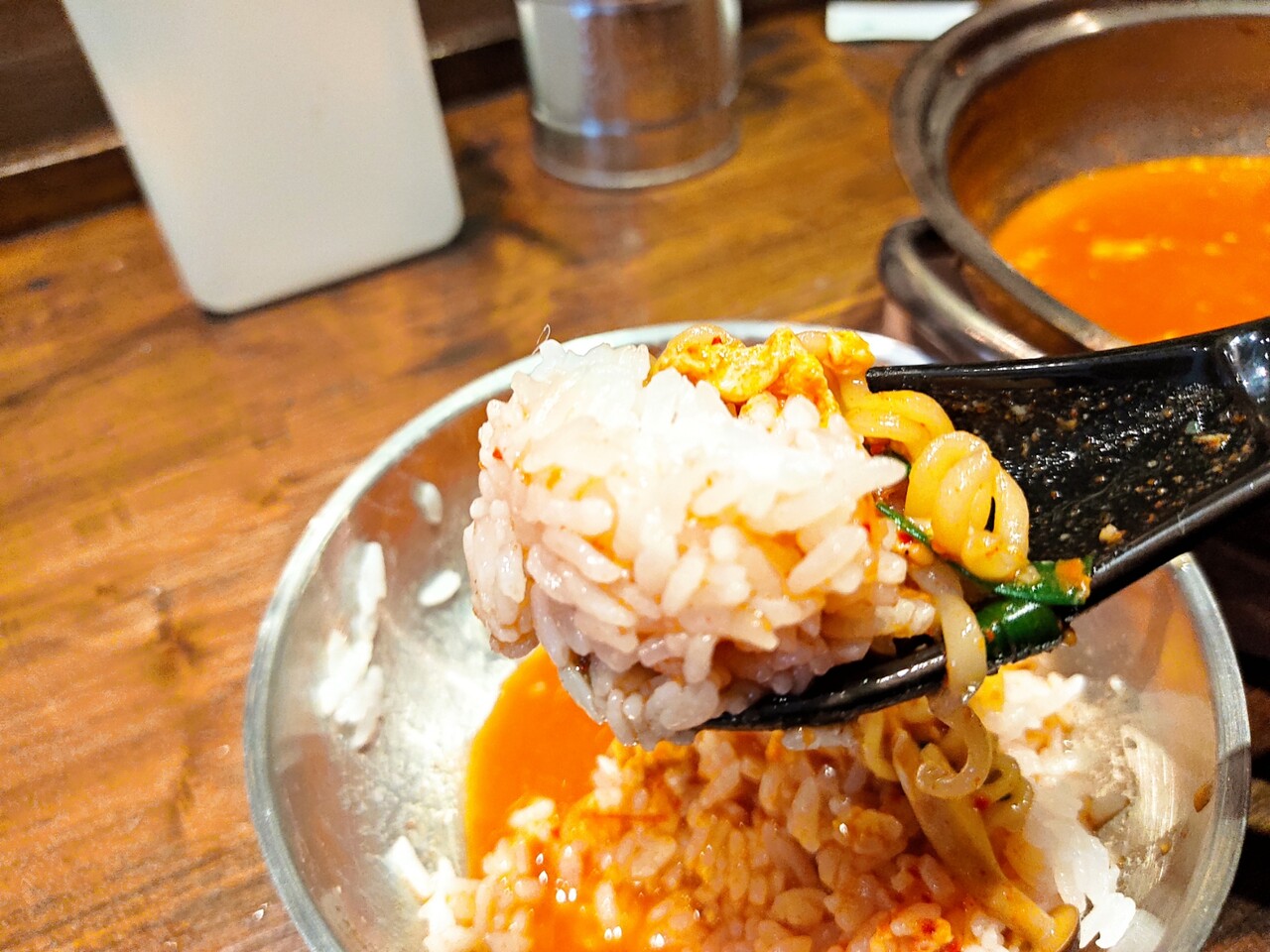 ライスがまだ残っているのでレンゲでスープをライスにぶっ掛けさぁ頂きます…