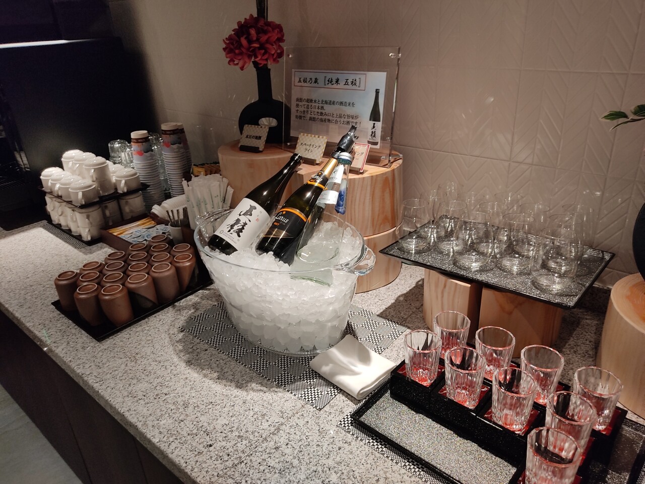 最近の朝食ビュッフェは朝からスパークリングワインや日本酒って 凄いなぁと…