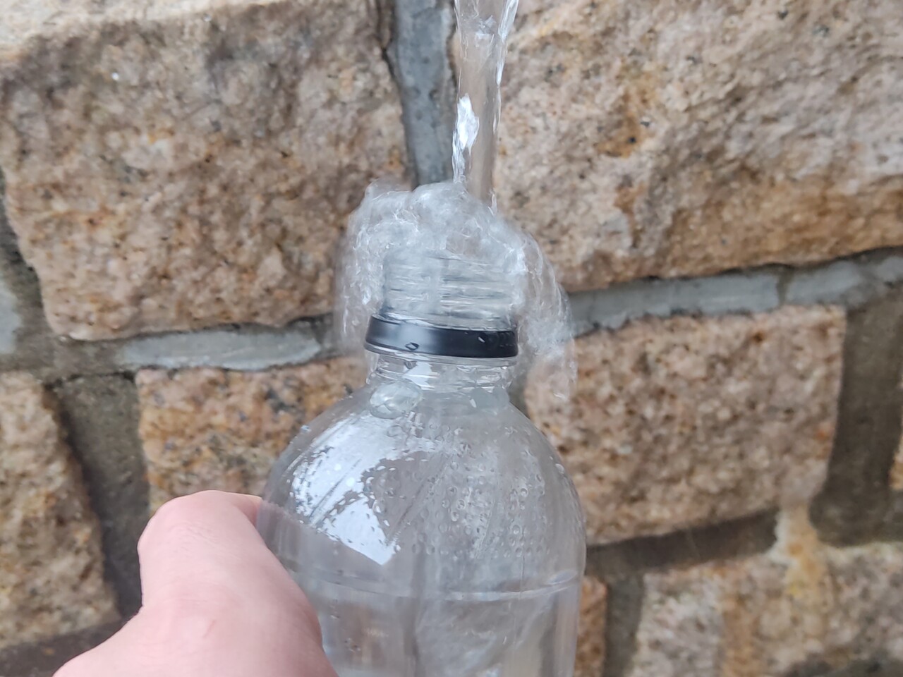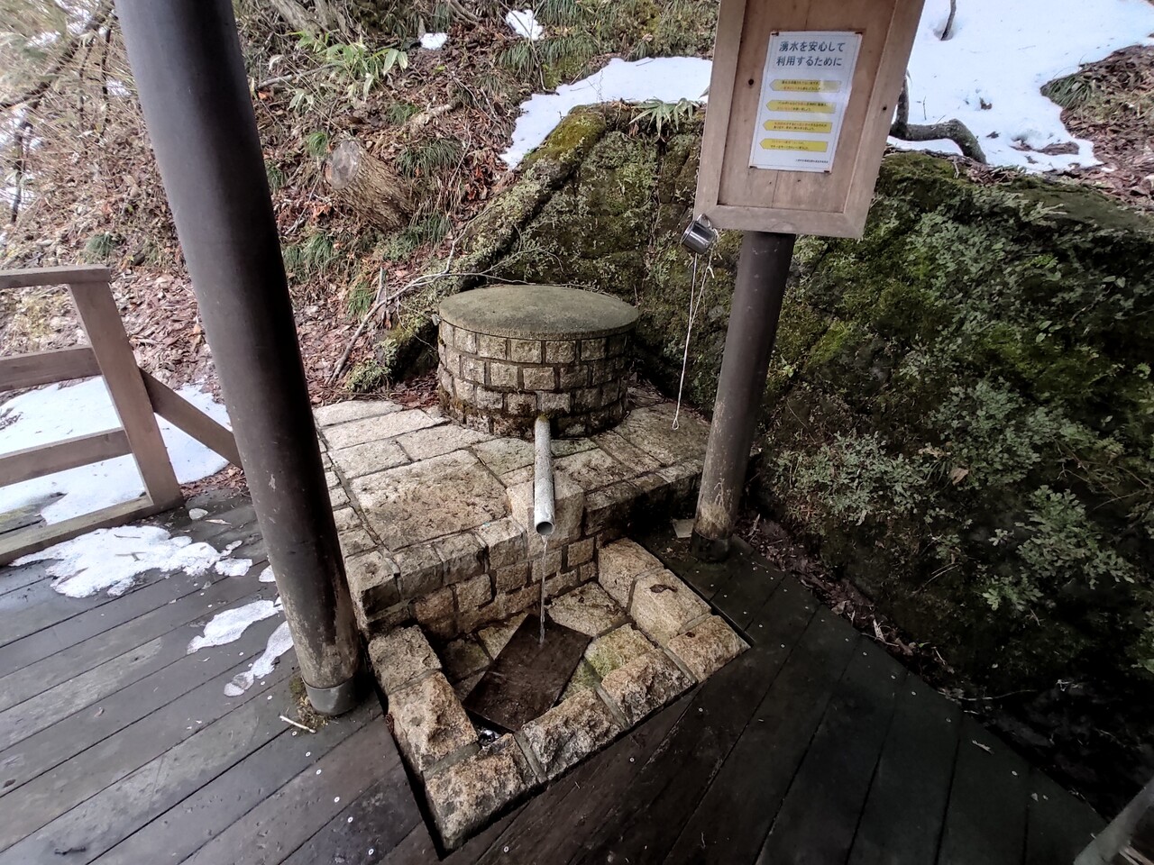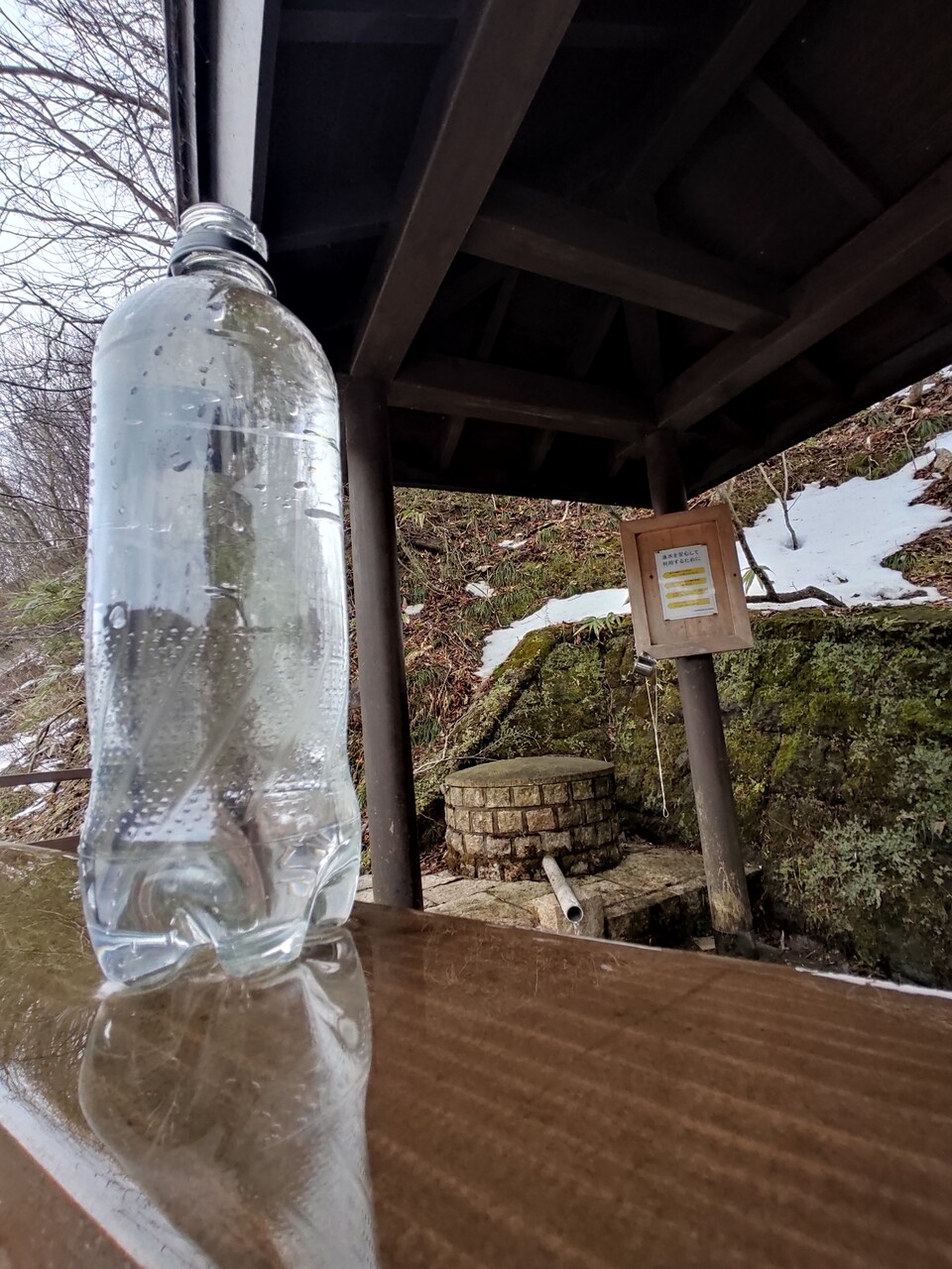 ペットボトルに水を汲みまして 少し飲んでみると 冷たくて美味っ