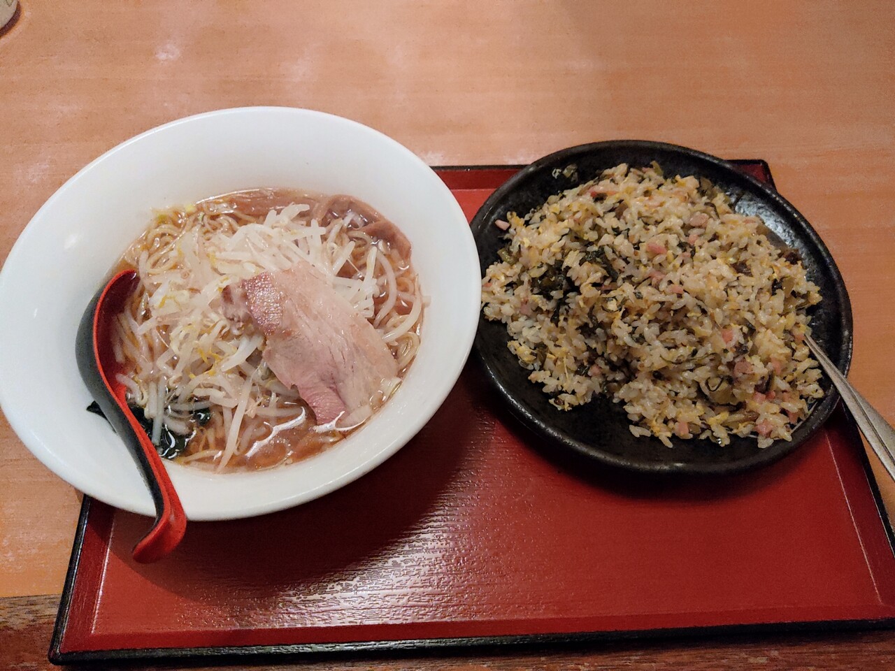 スープ代わりに スープの少ないラーメンを食べて 高菜炒飯も食べて食べて食べ進めて 程なくして完食となりした