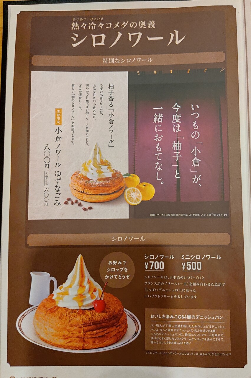 新作のシロノワールを求めに 北斗市七重浜にある「珈琲所コメダ珈琲店イオン上磯店」に伺い 小倉ノワールゆずなごみ をキメてきました